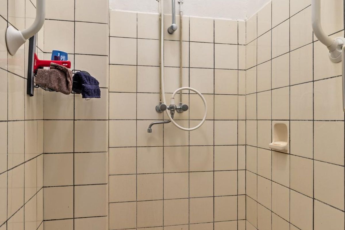 Vanuit hier loop je door naar de badkamer, die is voorzien van een douche.