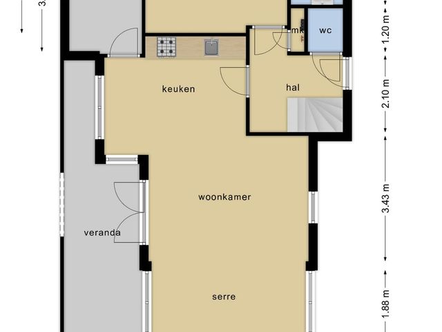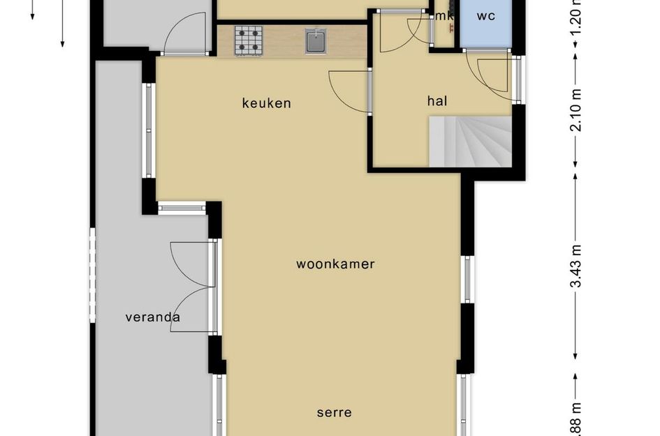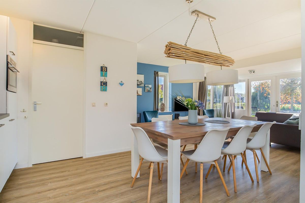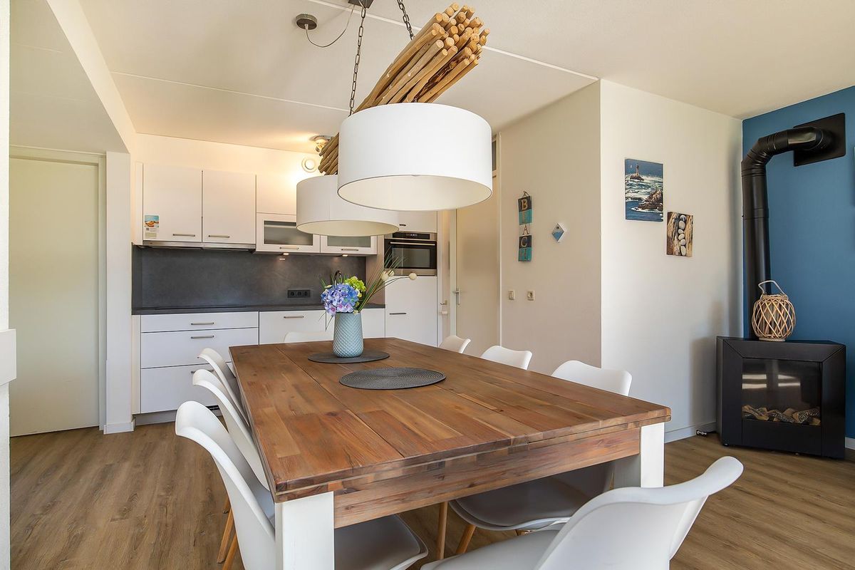De begane grond van de woning beschikt over een volledig leef programma. Via de entree waar een apart toilet is, bereik je de ruime, lichte en huiselijk ingerichte woonkamer. Deze heeft een gashaard, smart tv en meerdere dubbele tuindeuren, waarvan één naar het terras op het zuidoosten. De nieuwe moderne keuken is volledig uitgerust met o.a. koelkast, inductiekookplaat, combimagnetron en vaatwasser.