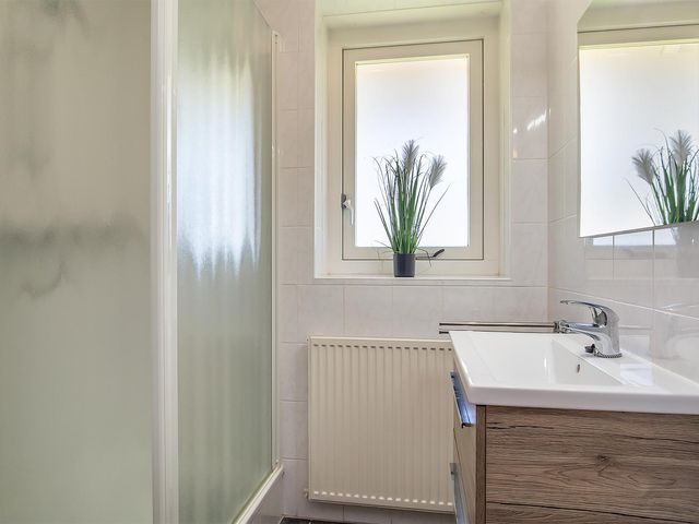 Op de begane grond bevindt zich een ruime slaapkamer voorzien van een tweepersoonsbed en een badkamer en suite met een douchecabine en een badmeubel met wastafel. Hierdoor in het bijzonder geschikt voor mensen die moeite hebben met traplopen.