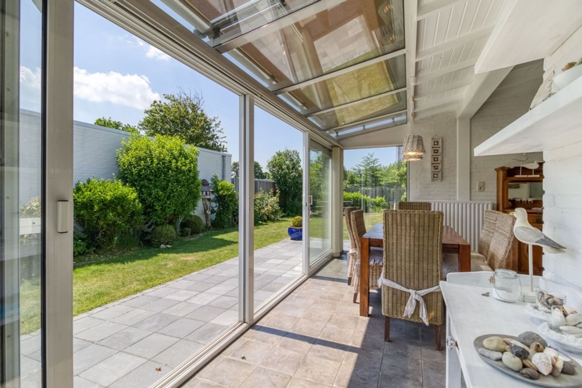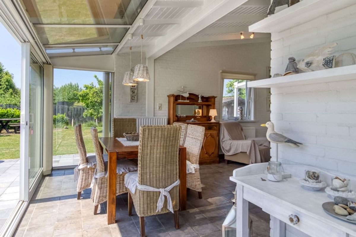 De serre heeft een dubbele schuifdeur naar het terras aan de achterkant. Ook is er in de woonkamer een openhaard voor de gezellige winterse avonden.