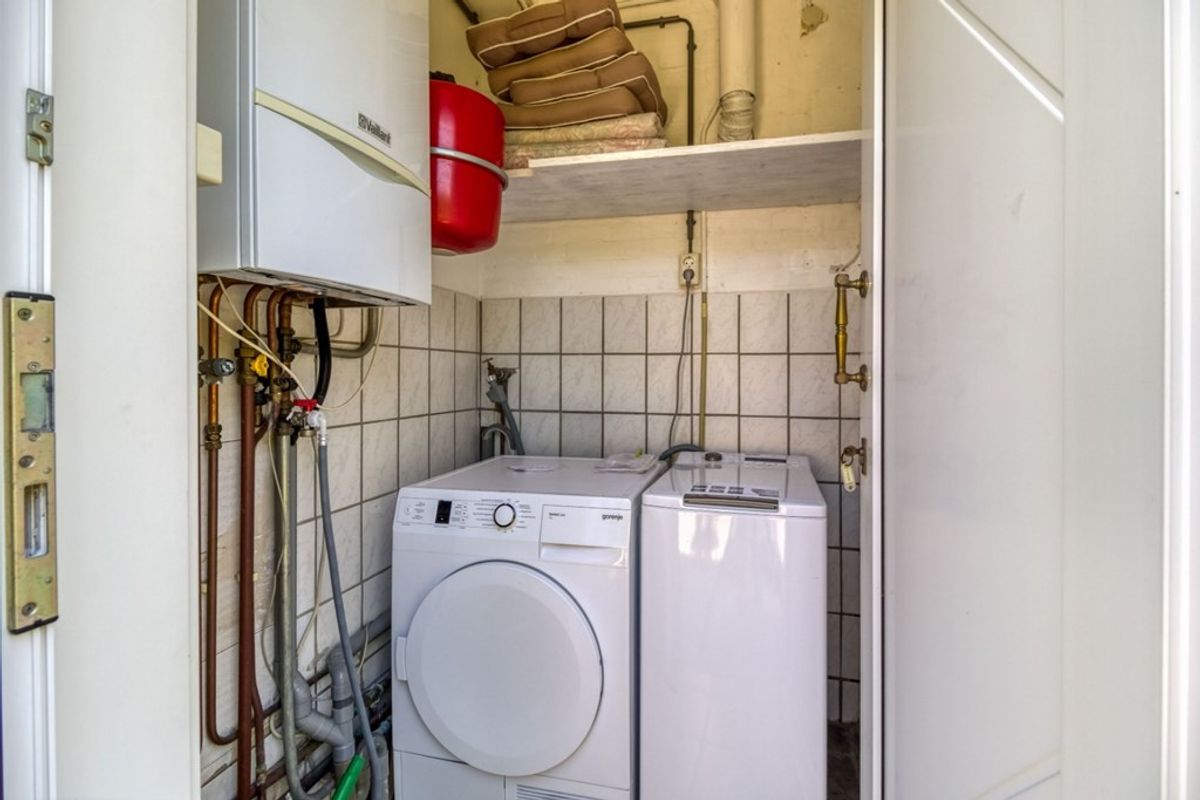 Er zijn 3 slaapkamers waarvan twee er via de hal te bereiken zijn en één via de woonkamer. De badkamer is voorzien van ligbad met douchefunctie, wastafel en toilet. Apart tweede toilet met fonteintje. In de berging die vanaf buiten te bereiken is bevinden zich de cv-ketel, wasmachine en droger.