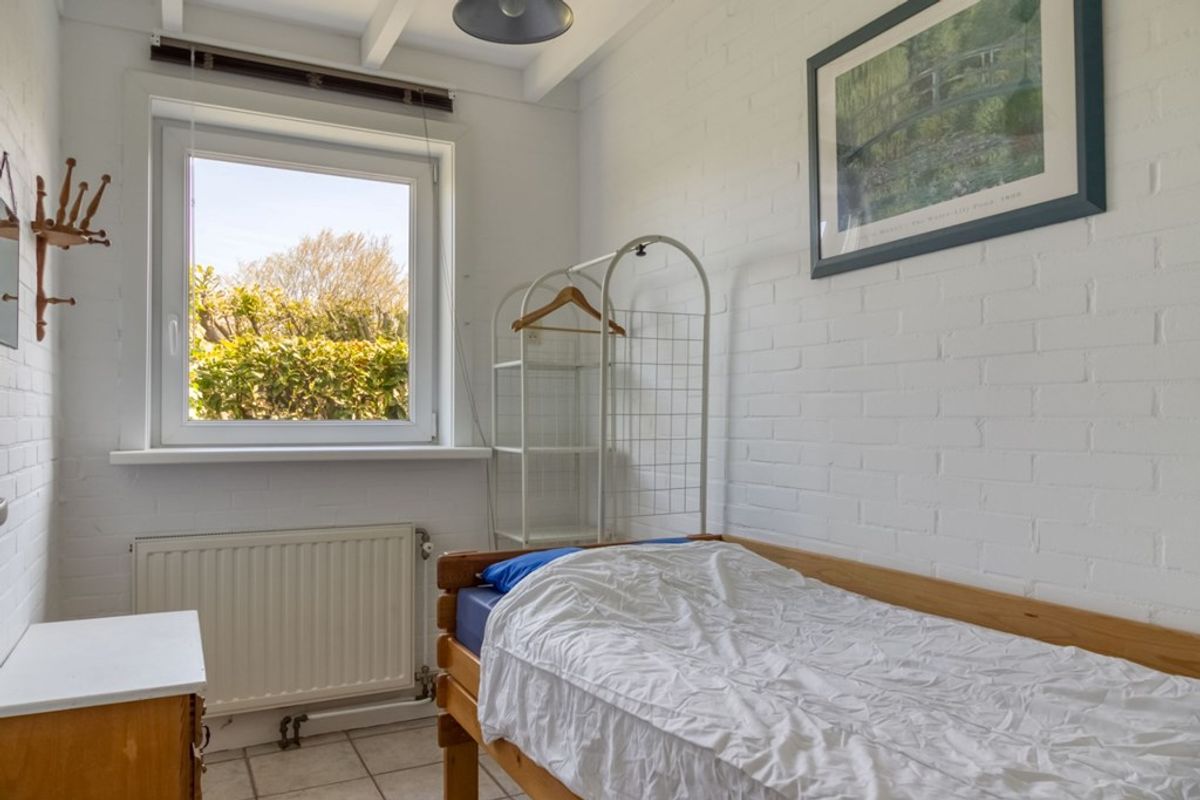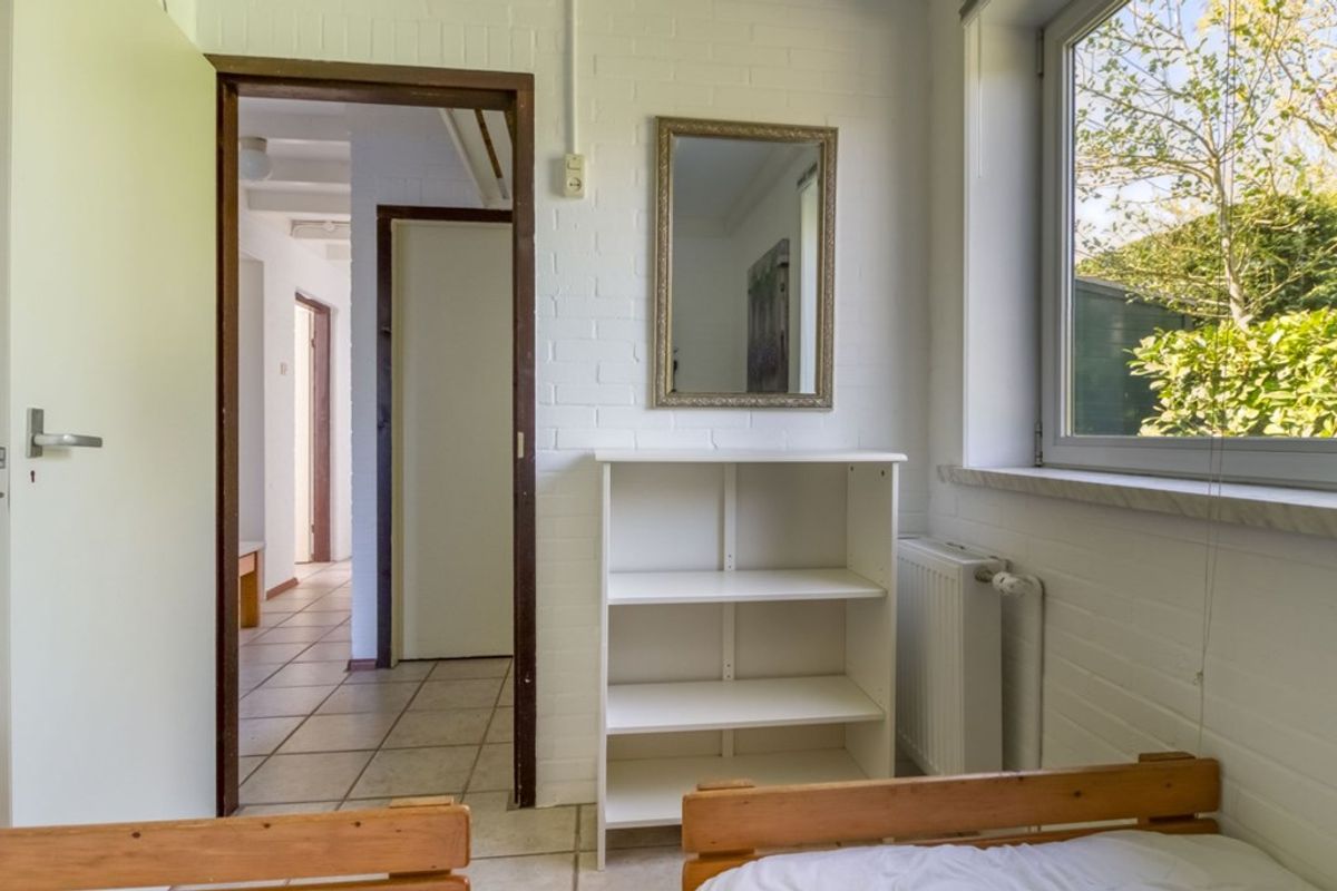 Er zijn 3 slaapkamers waarvan twee er via de hal te bereiken zijn en één via de woonkamer. De badkamer is voorzien van douche, wastafel en toilet. Apart tweede toilet met fonteintje. In de berging bevindt zich de cv-ketel, wasmachine en is er voldoende ruimte voor het opbergen van huishoudelijke spullen.
