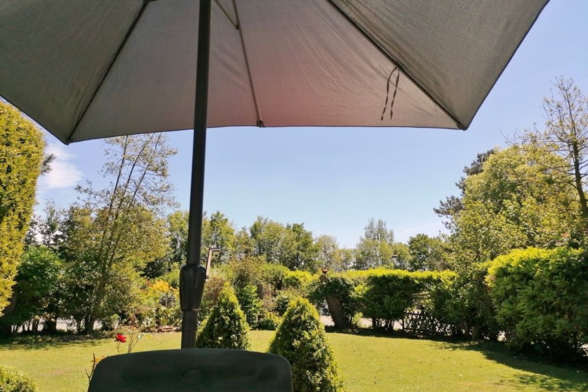 De tuin is voornamelijk gelegen op het zuiden en westen. Het terras is windbeschut en hier kunt u al vroeg in het seizoen heerlijk buiten zitten en genieten van de zon. In de tuin is er voornamelijk zicht op groen. Kortom een heerlijke tuin waar u niks anders hoort dan de vogels en helemaal tot rust kunt komen.
