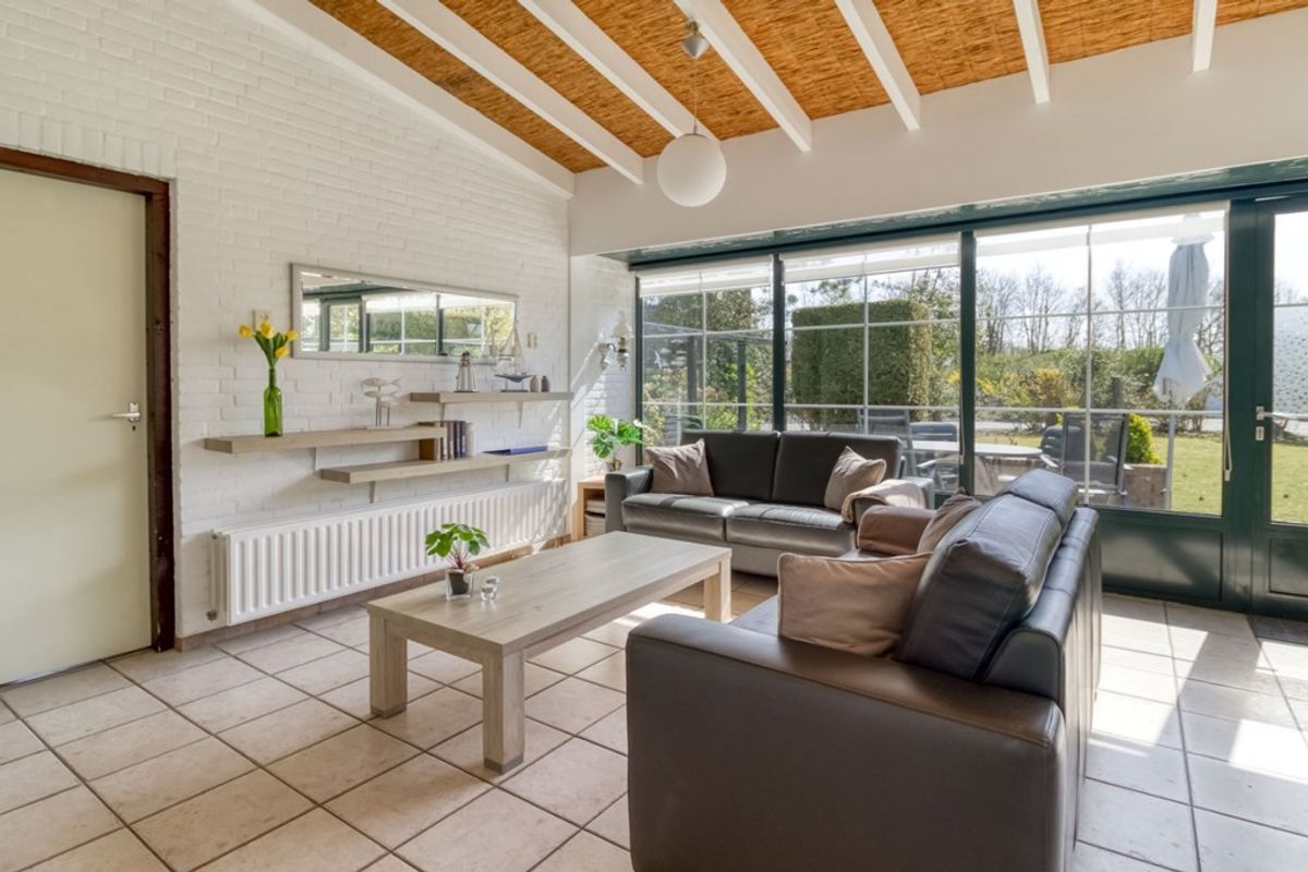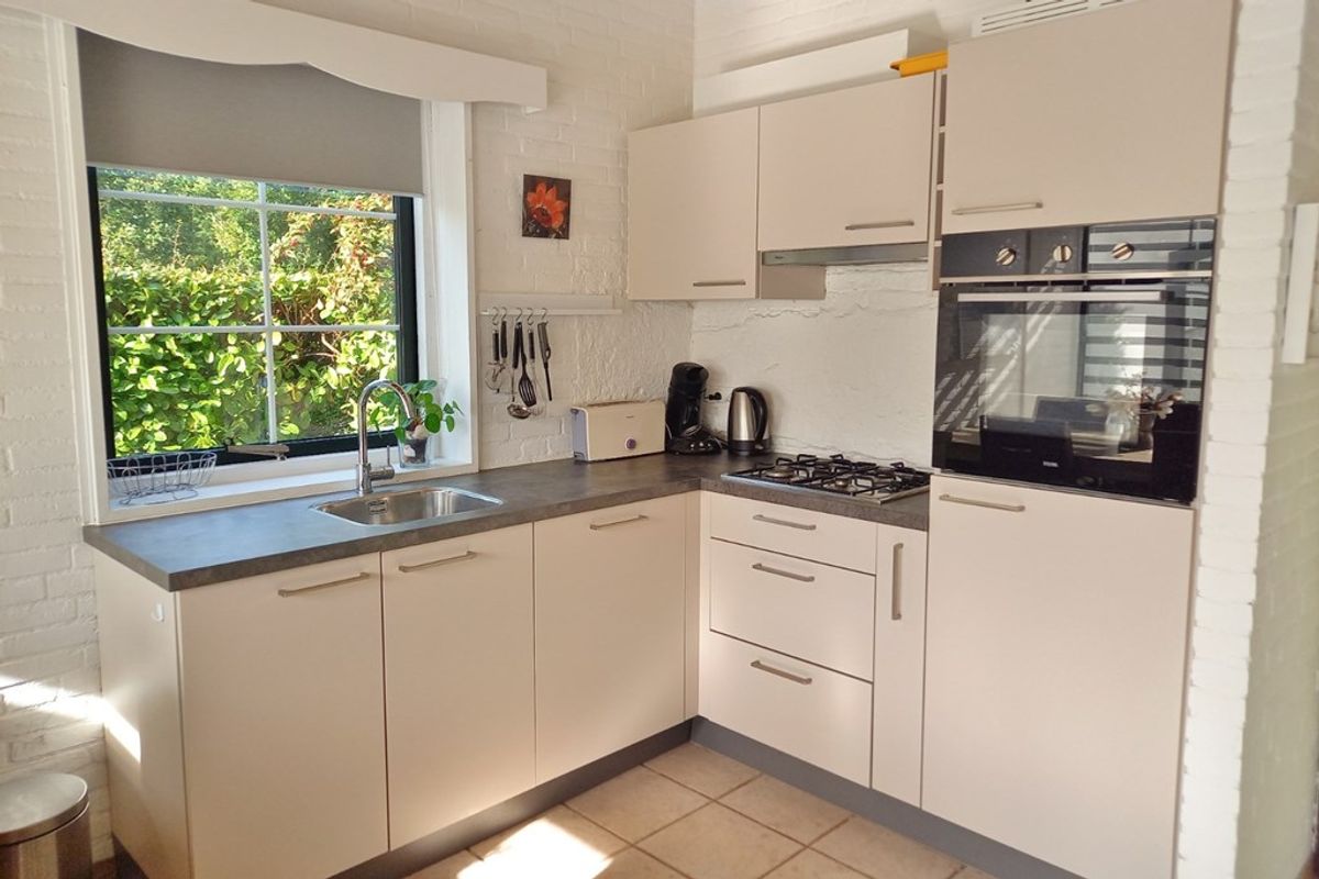 De woonkamer heeft tuindeur naar het windbeschutte terras en de tuin. De recent vernieuwde keuken in hoekopstelling is voorzien van alle nodige en geïntegreerde inbouwapparatuur zoals 4 pits- gaskookplaat, afzuigkap, spoelbak, vaatwasmachine, koelkast met vriesvak en combi-magnetron.
