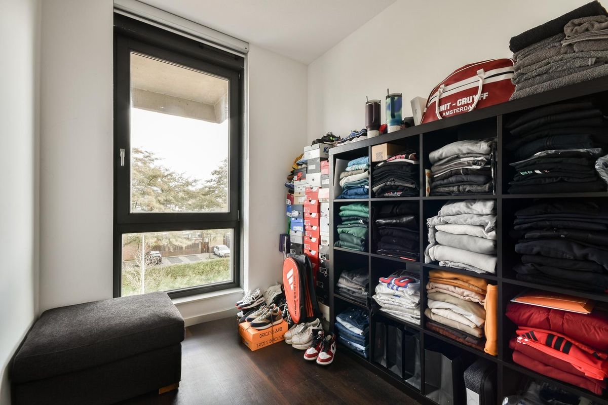 Aan de achterzijde bevinden zich twee slaapkamers. De ruime hoofdslaapkamer beschikt over een elektrisch gordijn, zodat je met één druk op de knop volledige privacy of juist zonlicht kunt regelen. Vanuit deze kamer heb je directe toegang tot het balkon van ca. 4,5 m², waar je ’s zomers heerlijk kunt genieten van de zon en het uitzicht. De tweede slaapkamer is ideaal als logeerkamer, werkkamer of inloopkast.