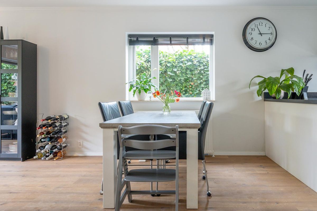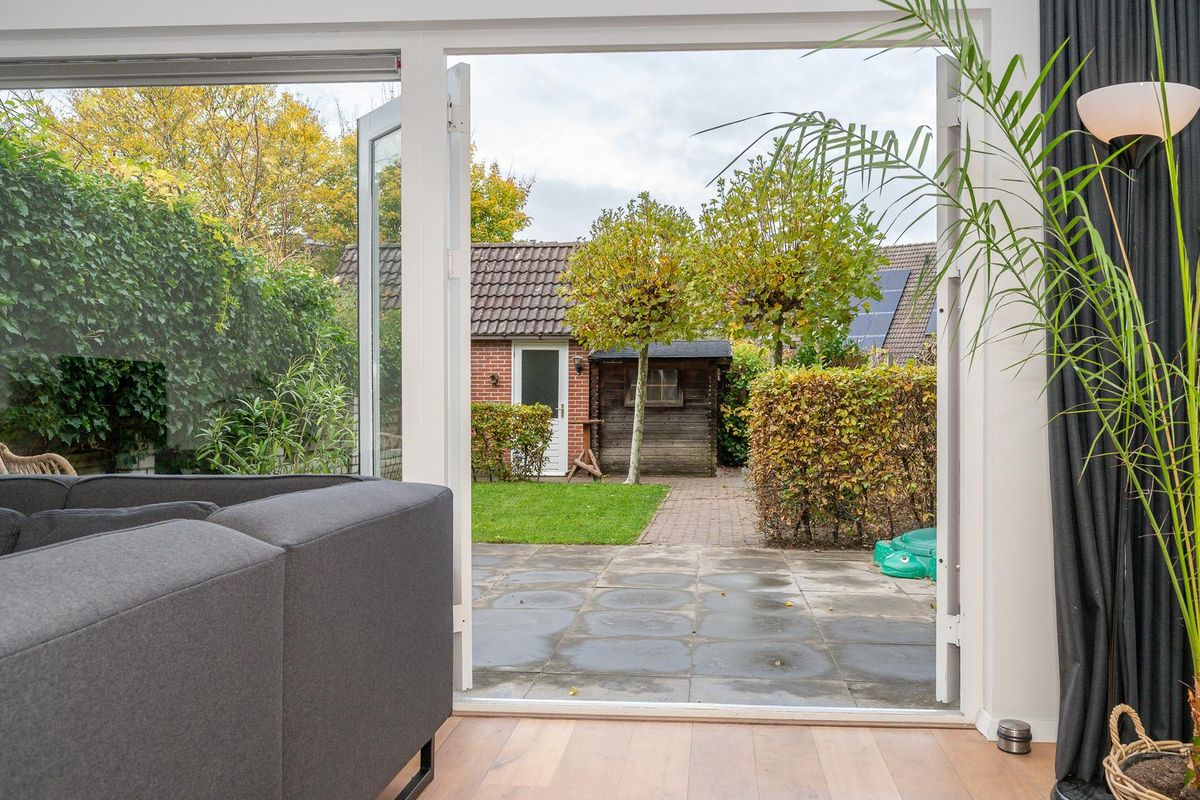 De glad gestucte wanden en plafond en de houten vloer zorgen voor de strakke, warme, eigentijdse sfeer. De lichte woonkamer biedt via openslaande deuren direct toegang tot de groene, diepe tuin - een heerlijke plek voor zomerse barbecues, spelende kinderen of een rustig kopje koffie in de zon. Dankzij de hoekligging geniet je hier van extra lichtinval en een gevoel van vrijheid. De tuin is voorzien van een stenen schuur en een tuinhuisje, gelegen op het (noord)westen. Je hebt in de zomermaanden einde ochtend al de zon in de achtertuin en kun je tot diep in de avond volop van de zon genieten. Er is een achterom vanuit waar de kinderen veilig zelf naar het achtergelegen gemeenschappelijke speelpleintje kunnen gaan.