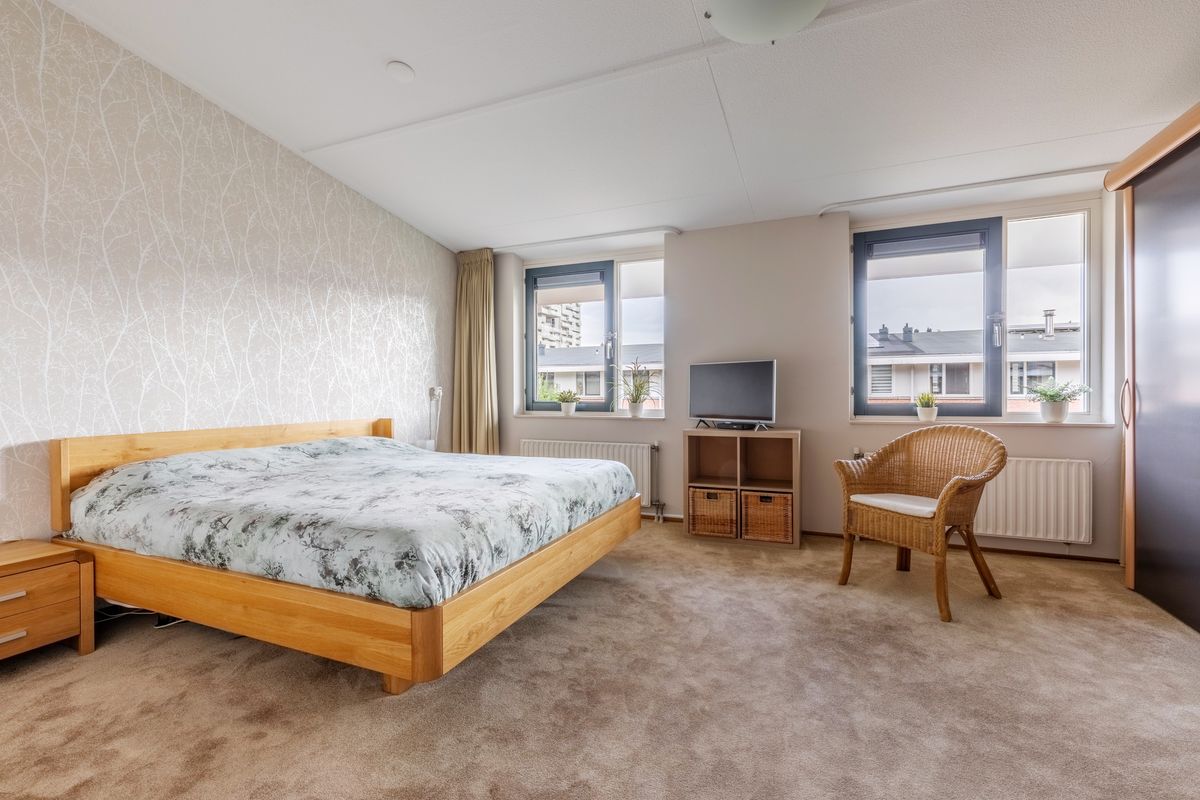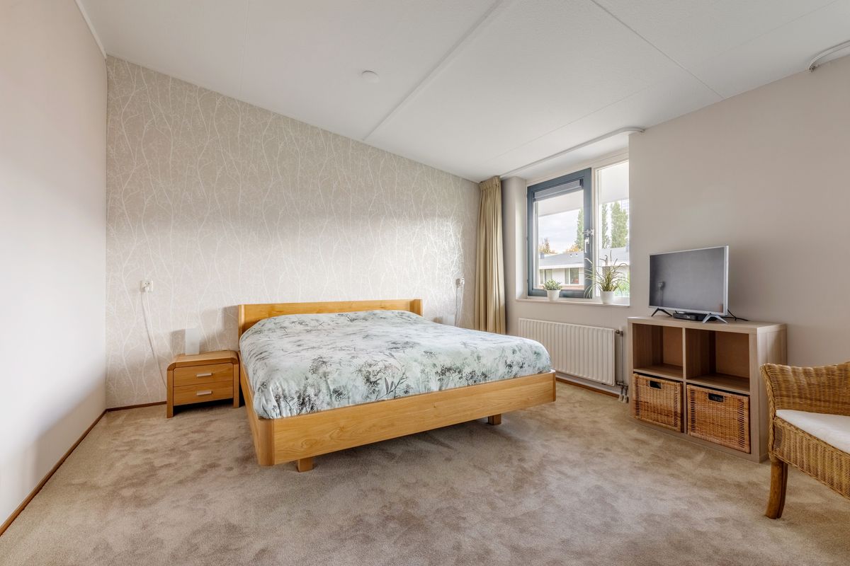 Op de overloop vind je twee slaapkamers en de badkamer. De royale hoofdslaapkamer aan de achterzijde kun je eenvoudig opsplitsen in twee kamers. Aan de voorzijde ligt een tweede slaapkamer met een prettige indeling. De badkamer is strak tot aan het plafond betegeld en beschikt over een wastafel, douchecabine en radiator.