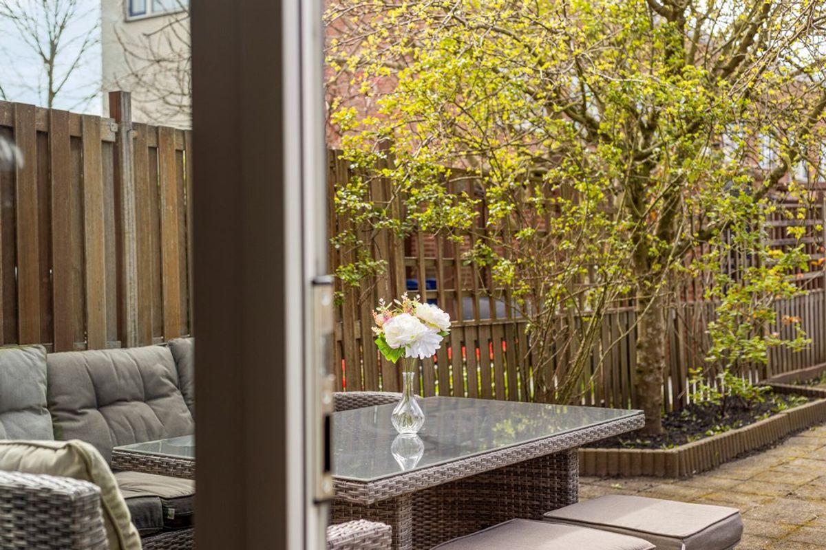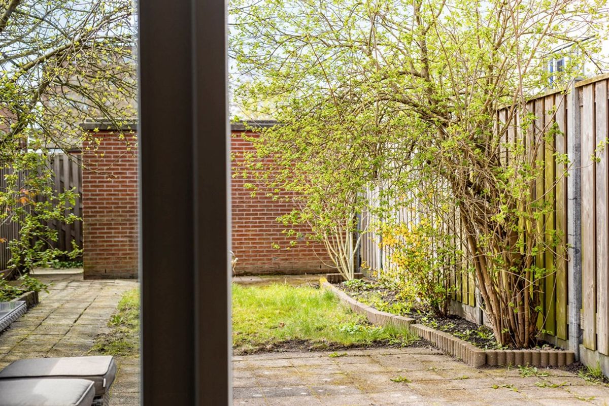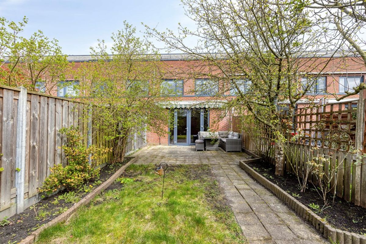 De zonnige achtertuin op het zuidwesten is een echte plus. Hier kun je tot in de avonduren genieten van de zon, rust en privacy. De tuin beschikt over een zonnescherm, een vrijstaande stenen berging en een handige achterom.