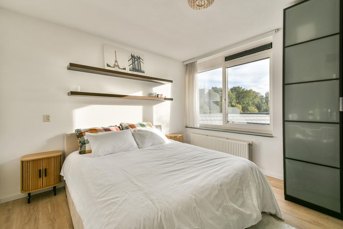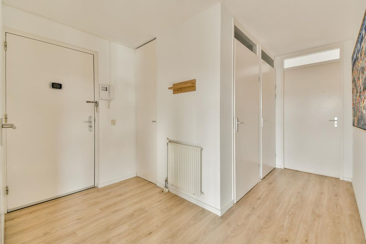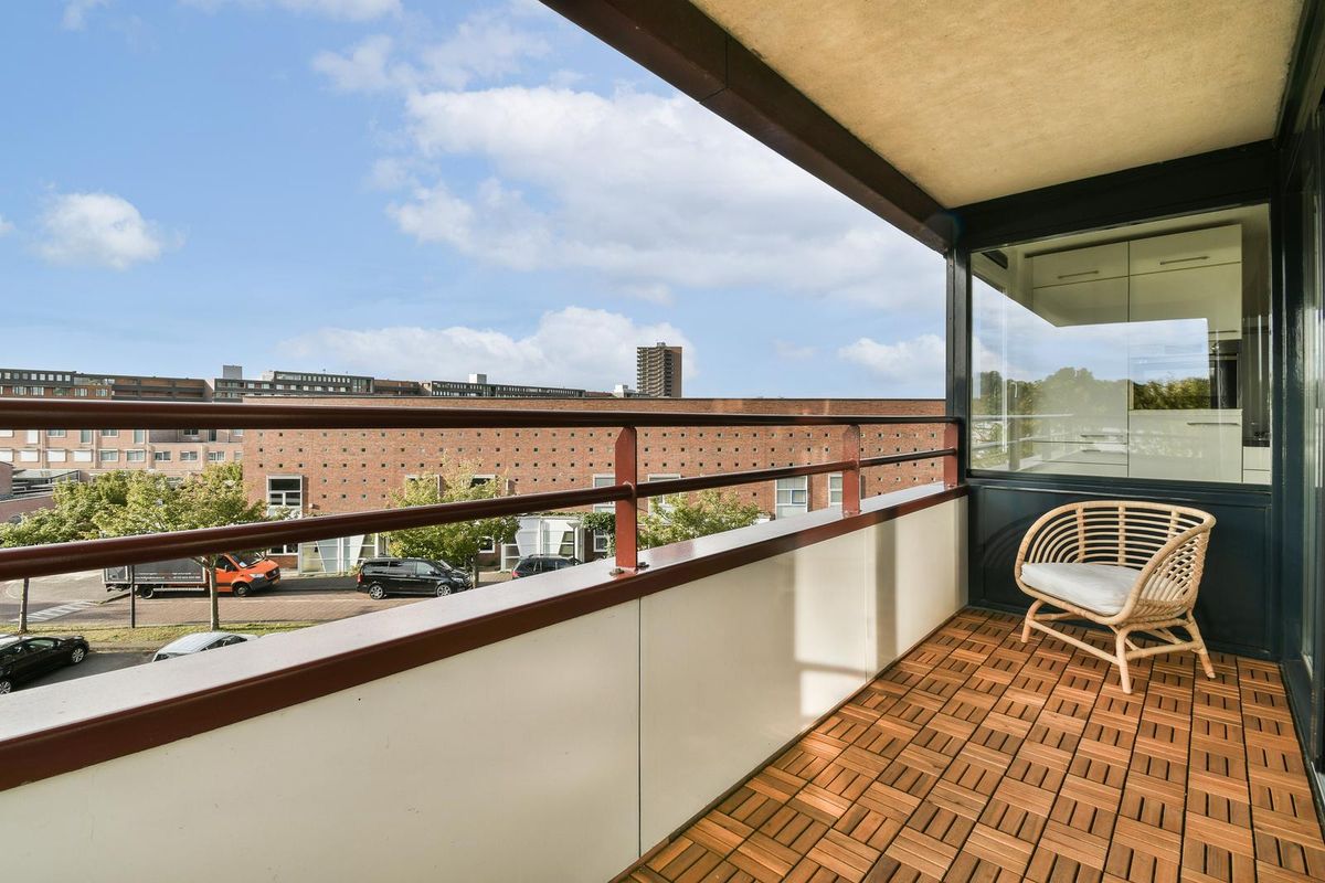 Via de verzorgde en lichte entree bereikt u met de lift of trap de derde verdieping. Op de galerij bevindt zich de voordeur, voorafgegaan door een garderobe en meterkast. De ruime hal, voorzien van videofoon, geeft toegang tot alle vertrekken van de woning. Aan de achterzijde liggen twee ruime slaapkamers. Ook zijn er een separaat toilet met fonteintje, een berging met cv-installatie en mechanische ventilatie en een tweede berging met de aansluitingen voor wasmachine en droger. De badkamer is in 2025 volledig vernieuwd en heeft met de houtlook wastafel een huiselijke uitstraling. De royale woonkamer is bijzonder licht en grenst aan de halfopen keuken voorzien van koelkast met aparte vriezer met ruime laden, een 5-pits gasstel, een wasmachine, combi-oven van Samsung en een gezellige eetbar. Vanuit de woonkamer loopt u het zonnige terras op, ideaal gelegen op het zuiden met vrij uitzicht. Het hele appartement is instapklaar: er ligt een mooie laminaatvloer en de muren zijn in 2025 opnieuw geverfd.