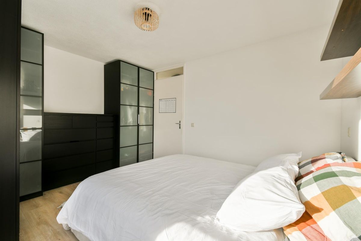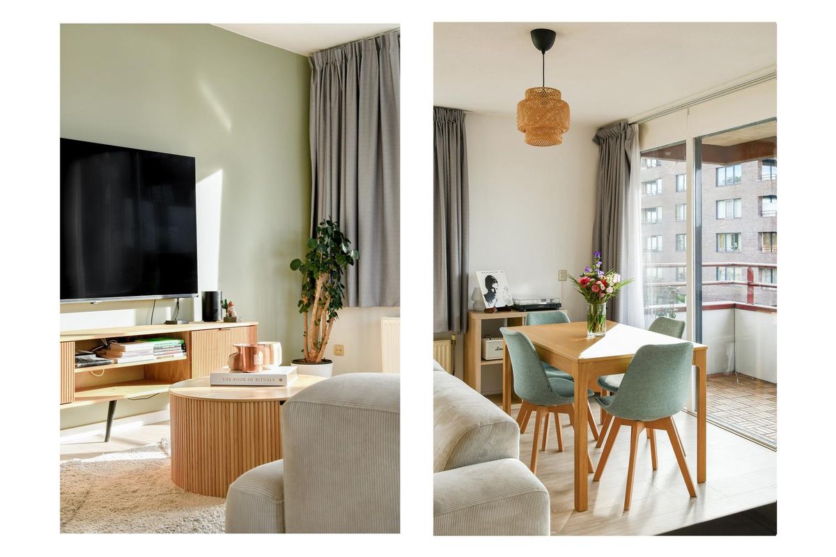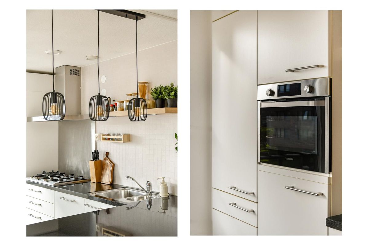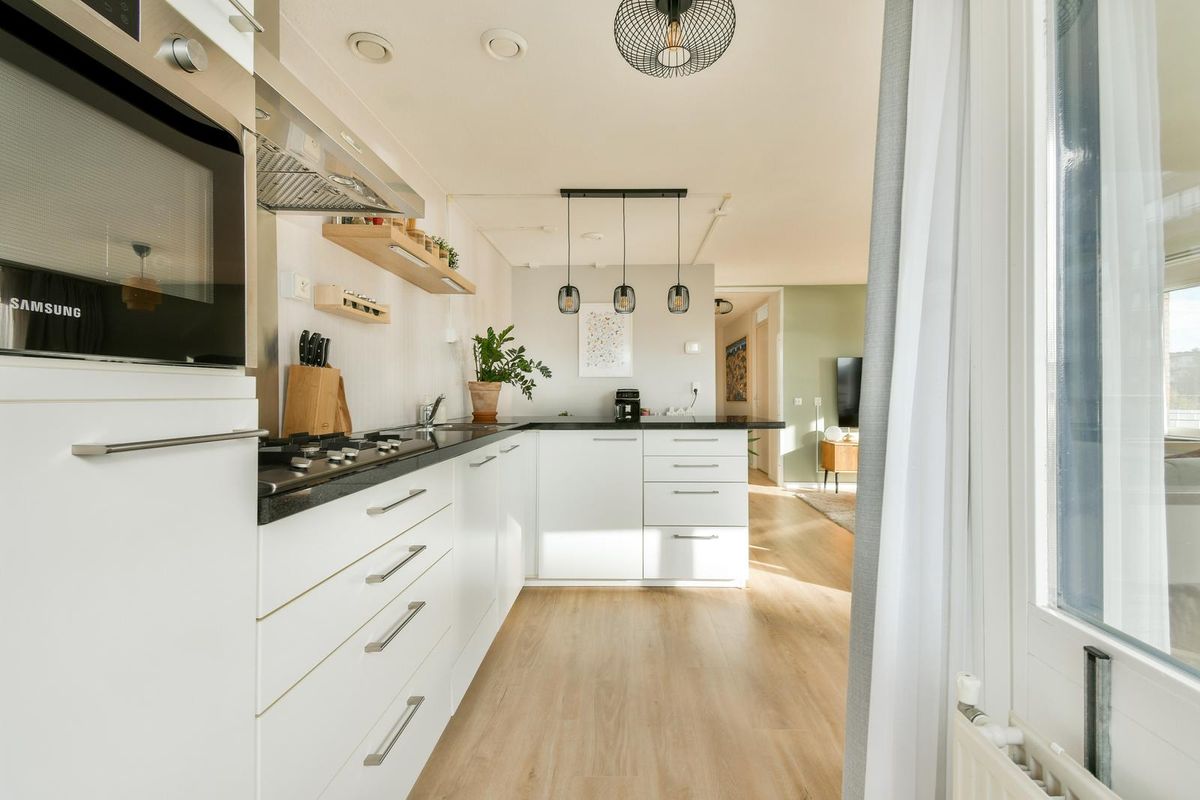 Via de verzorgde en lichte entree bereikt u met de lift of trap de derde verdieping. Op de galerij bevindt zich de voordeur, voorafgegaan door een garderobe en meterkast. De ruime hal, voorzien van videofoon, geeft toegang tot alle vertrekken van de woning. Aan de achterzijde liggen twee ruime slaapkamers. Ook zijn er een separaat toilet met fonteintje, een berging met cv-installatie en mechanische ventilatie en een tweede berging met de aansluitingen voor wasmachine en droger. De badkamer is in 2025 volledig vernieuwd en heeft met de houtlook wastafel een huiselijke uitstraling. De royale woonkamer is bijzonder licht en grenst aan de halfopen keuken voorzien van koelkast met aparte vriezer met ruime laden, een 5-pits gasstel, een wasmachine, combi-oven van Samsung en een gezellige eetbar. Vanuit de woonkamer loopt u het zonnige terras op, ideaal gelegen op het zuiden met vrij uitzicht. Het hele appartement is instapklaar: er ligt een mooie laminaatvloer en de muren zijn in 2025 opnieuw geverfd.