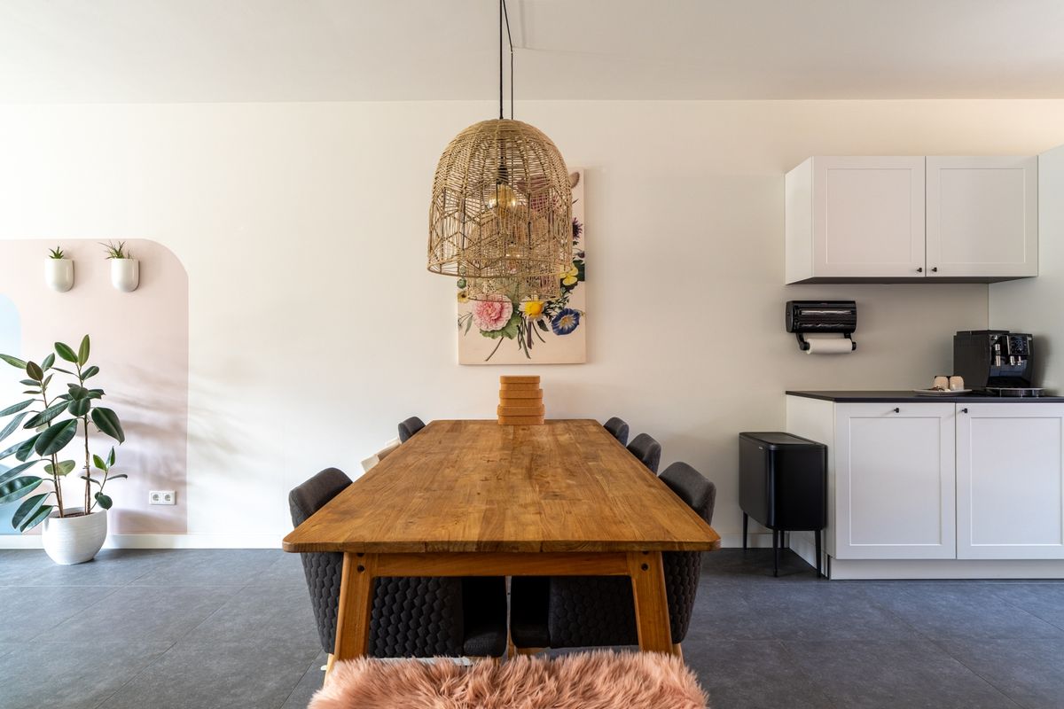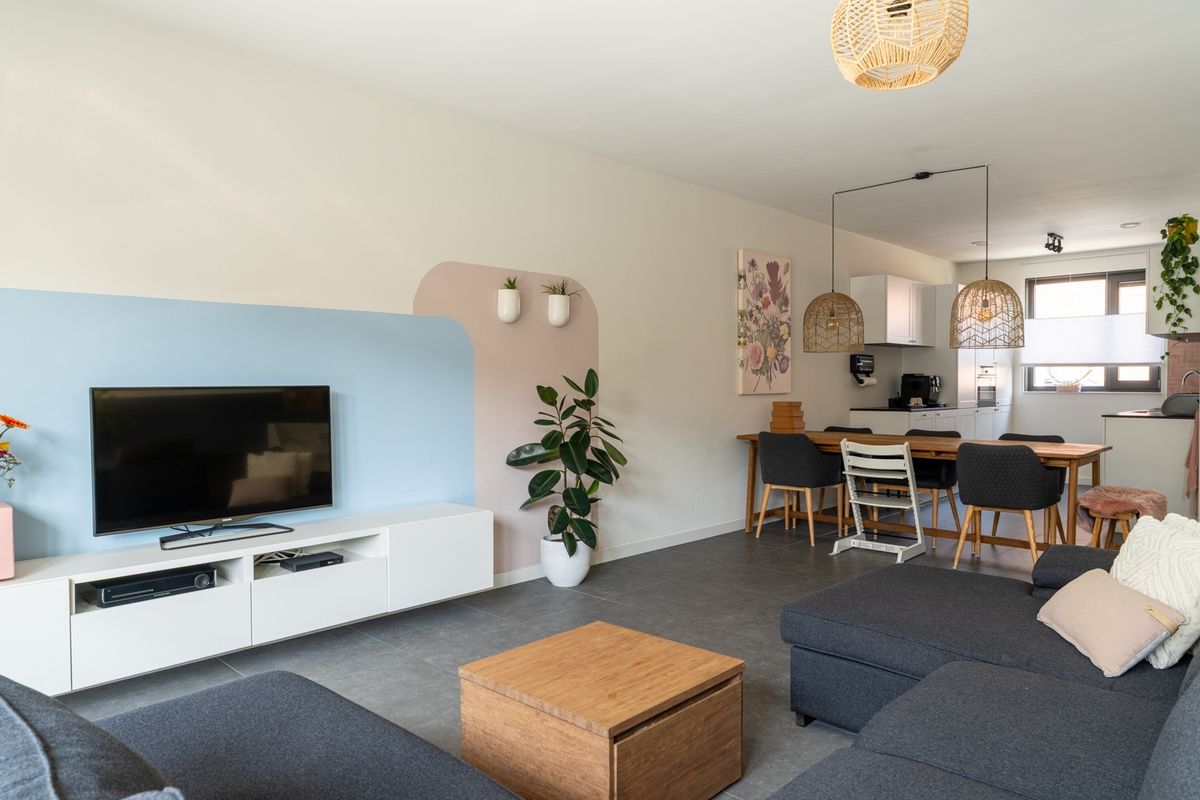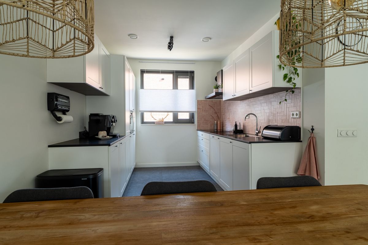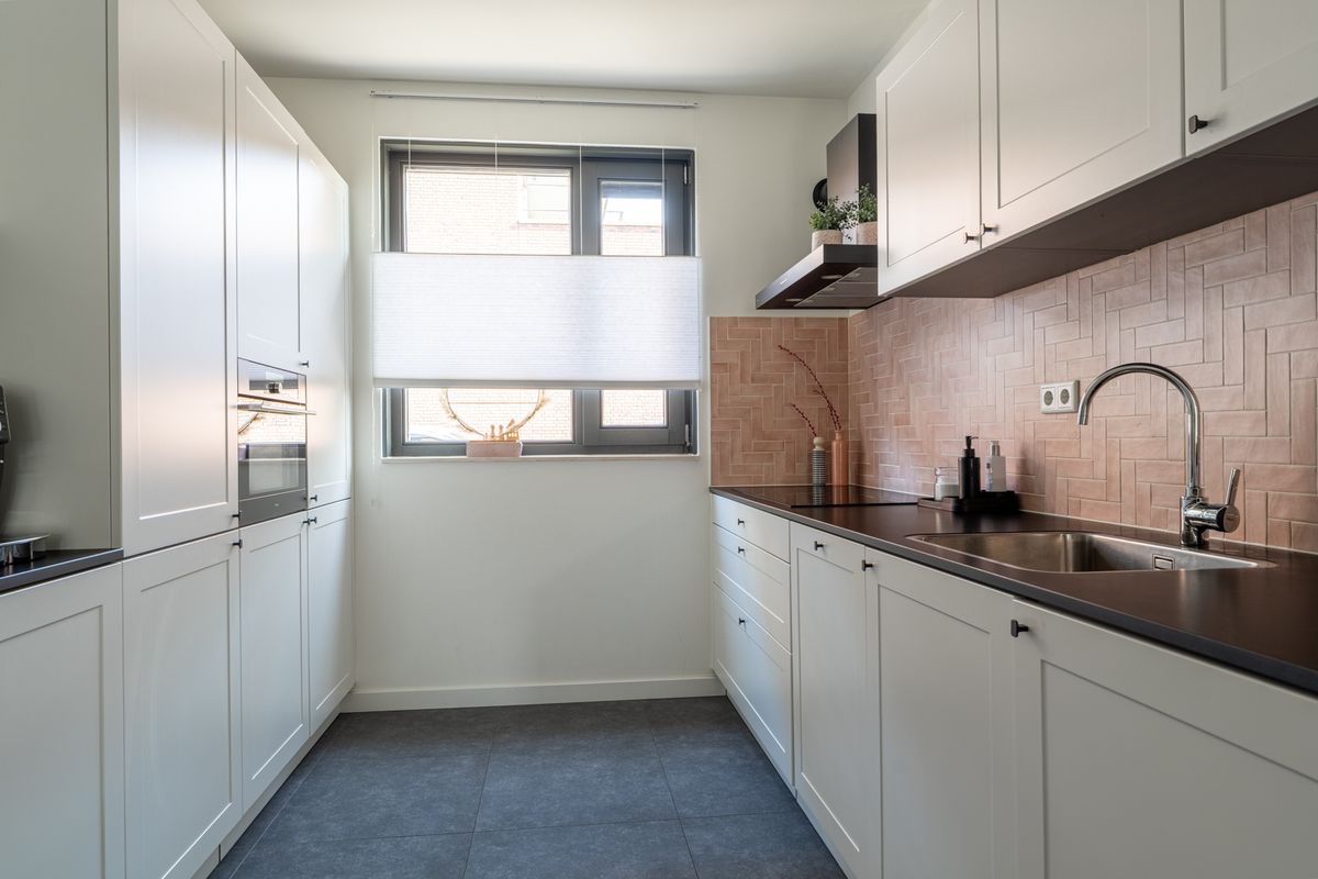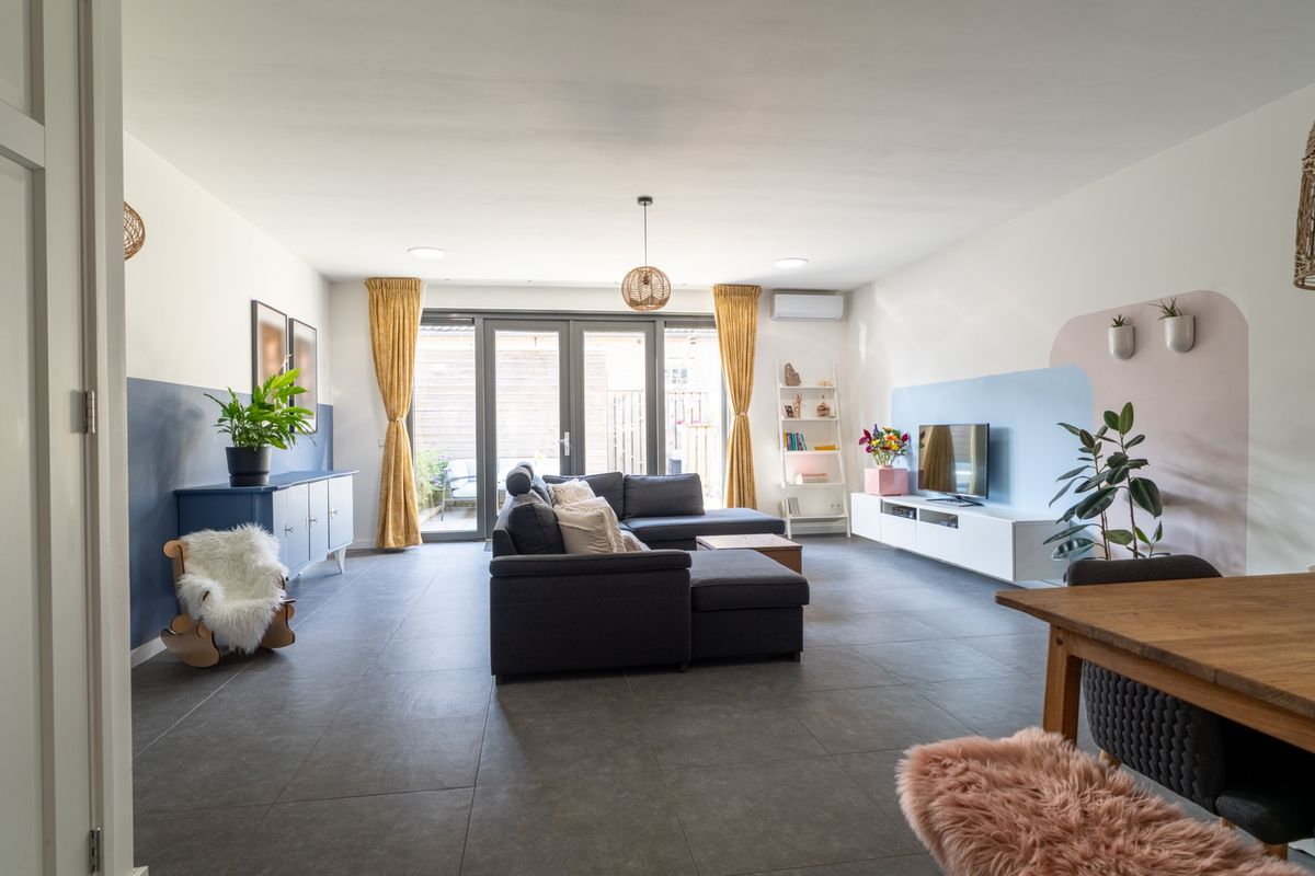 Hal met toilet, meterkast (10 groepen en 3 aardlekschakelaars), CV-kast (type Intergas, bouwjaar 2017) en de trapopgang naar de verdieping, sfeervolle uitgebouwde woonkamer met openslaande deuren naar het terras en de achtertuin. Aan de voorzijde is de moderne open keuken met een dubbele opstelling en voorzien van de volgende inbouwapparatuur: inductiekookplaat met afzuigkap, combimagnetron, vaatwasser, koelkast met vriesvak.
