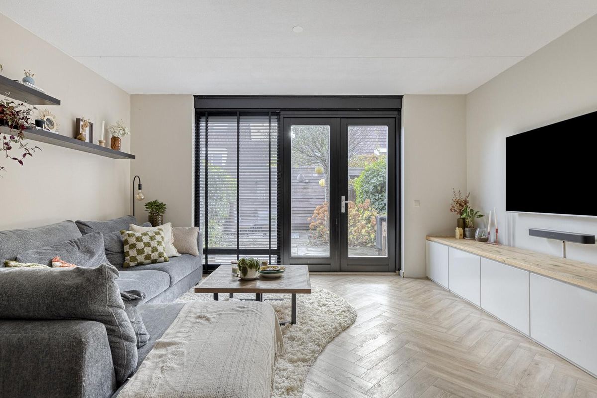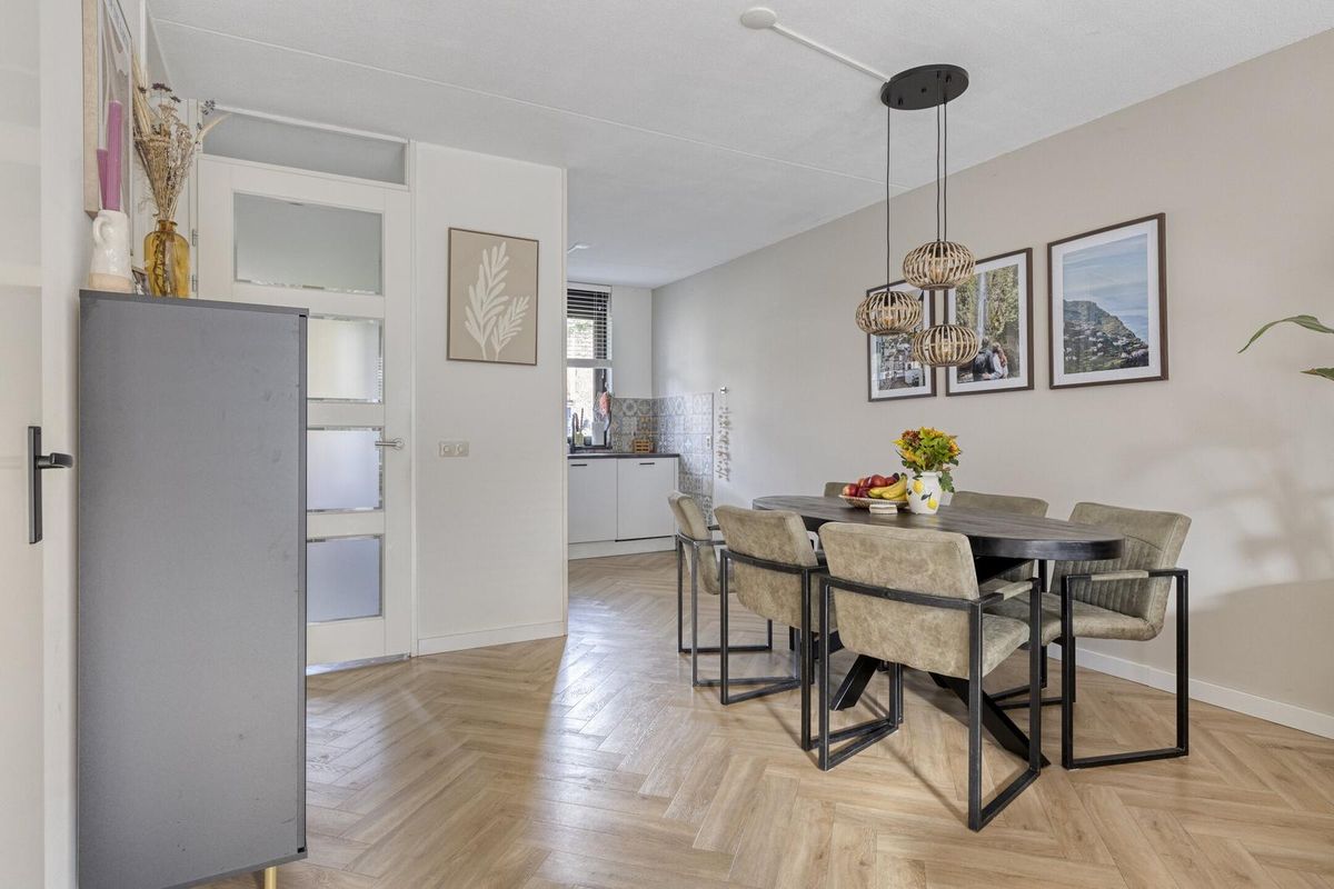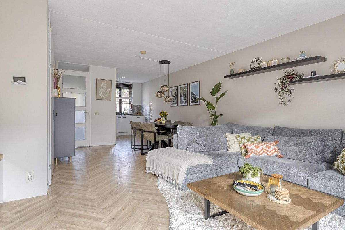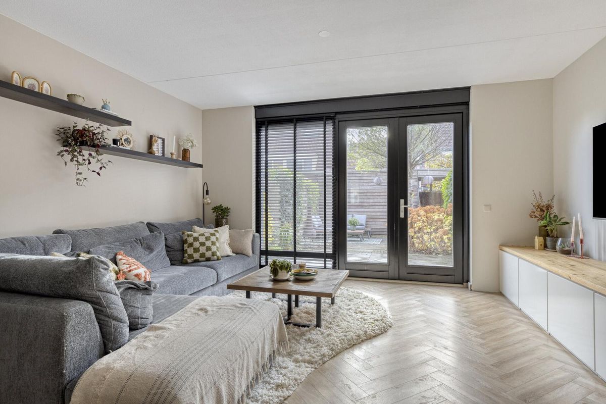 Entree/hal met meterkast, toiletruimte, trapopgang en toegang naar de woonkamer met open keuken. De toiletruimte is netjes ingericht met complete betegeling, toilet en fontein. De woonkamer heeft veel lichtinval door nagenoeg gevelbrede raampartijen, tuingerichte openslaande deuren en directe verbinding met de open keuken. De verzorgde keuken in L-vormige opstelling is voorzien van koelkast met vriesvak, combi-oven, 4-pits inductiekookplaat, afzuigkap, vaatwasser, spoelbak en diverse bergkasten en lades. De begane grondvloer is voorzien van een mooie visgraat PVC vloer met daaronder comfortabele vloerverwarming.