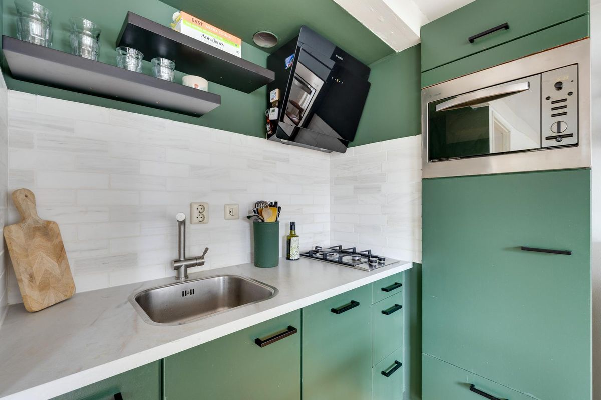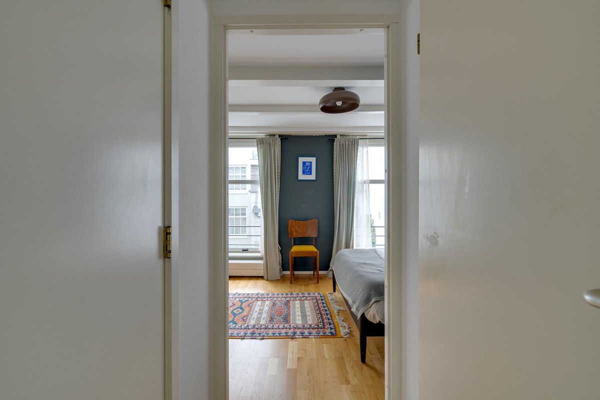 Via het verzorgde trappenhuis (gedeeld met slechts één ander appartement) bereik je de tweede etage. De woonkamer aan de voorzijde is licht en sfeervol, met karakteristieke balken en een open keuken voorzien van inbouwapparatuur. De badkamer ligt centraal in de woning en beschikt over een ligbad/douchecombinatie, toilet en wastafel. Achterin bevindt zich de slaapkamer – ruim, rustig en met voldoende plek voor een werkhoek of inloopkast.