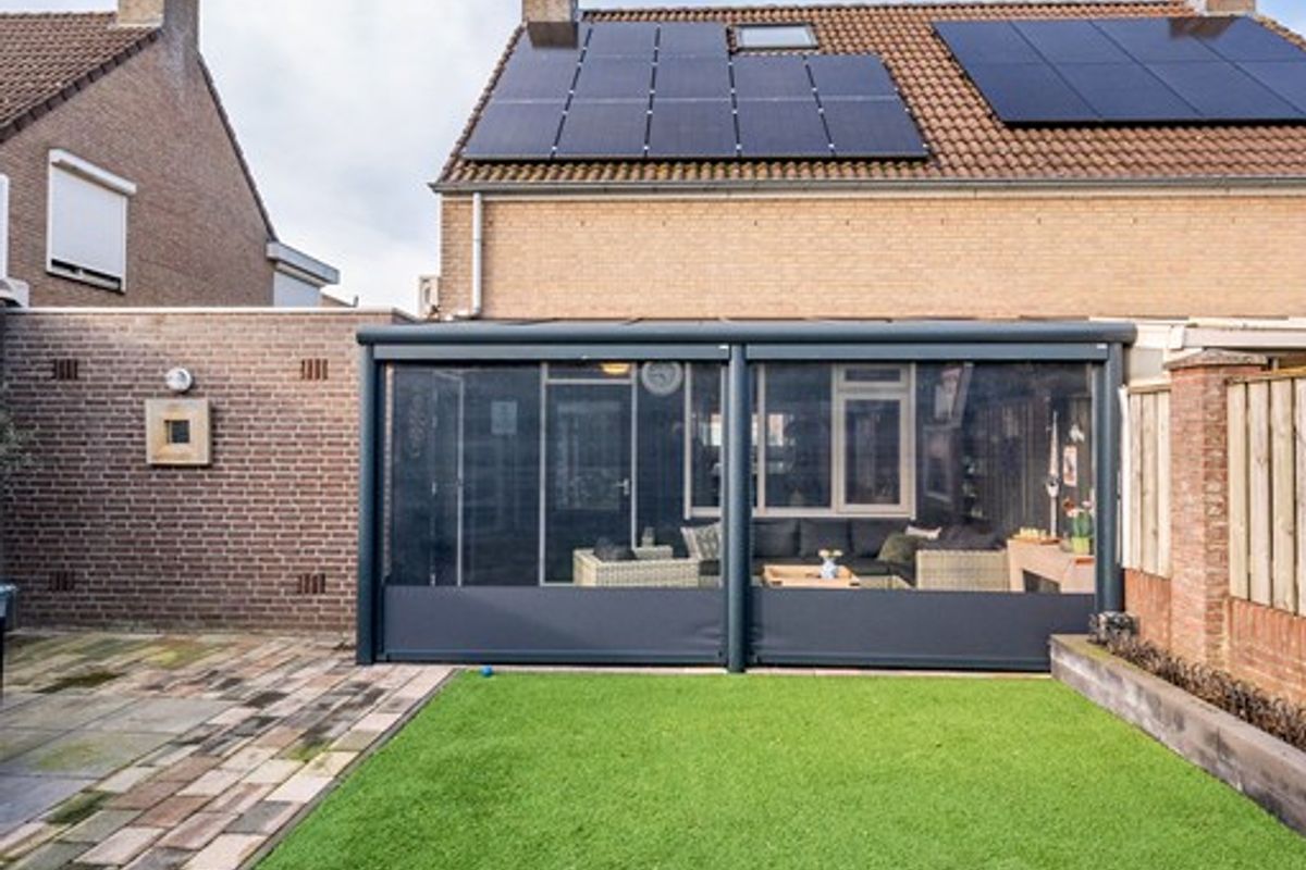 Het overige gedeelte van de tuin is onderhoudsvriendelijk ingericht met kunstgras en beschikt over een tweede terras. Hierdoor heeft u altijd de keuze tussen een zonnige plek of juist een aangename schaduwplaats, ideaal voor elk moment van de dag.