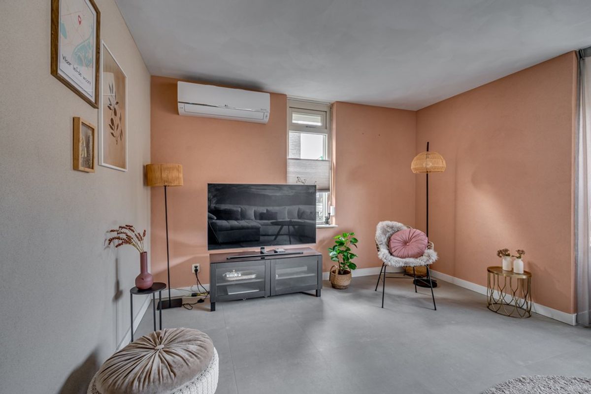 Voor een comfortabel binnenklimaat, het hele jaar door, is de woonkamer voorzien van een airco, zodat het zowel op zomerse als op winterse dagen aangenaam vertoeven is.