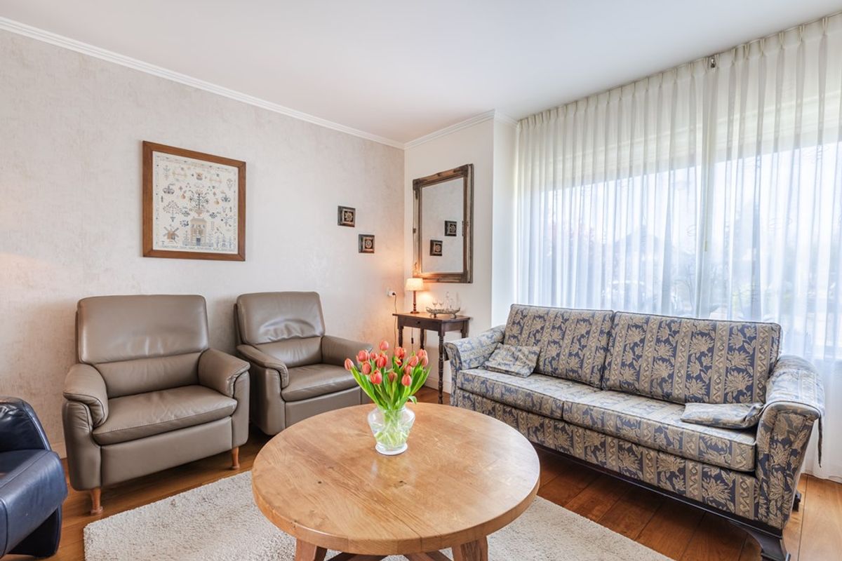 Hal (10 m²) met tegelvloer, toilet met fonteintje, gang, royale en lichte woonkamer (31 m²) met een eiken parketvloer en toegang middels een