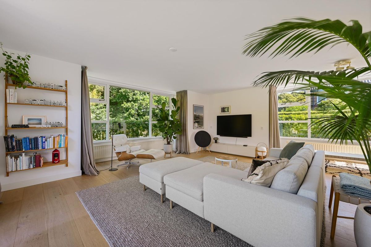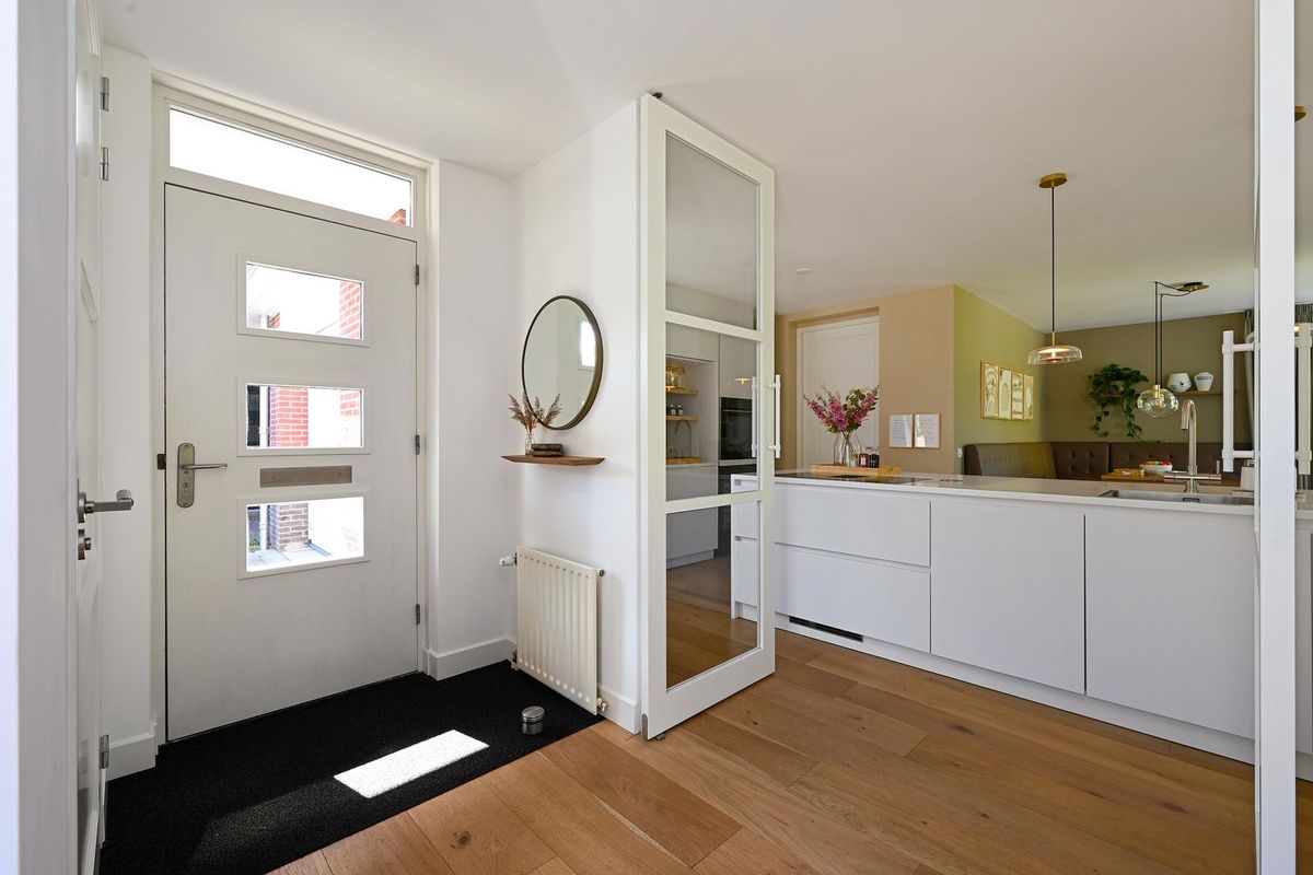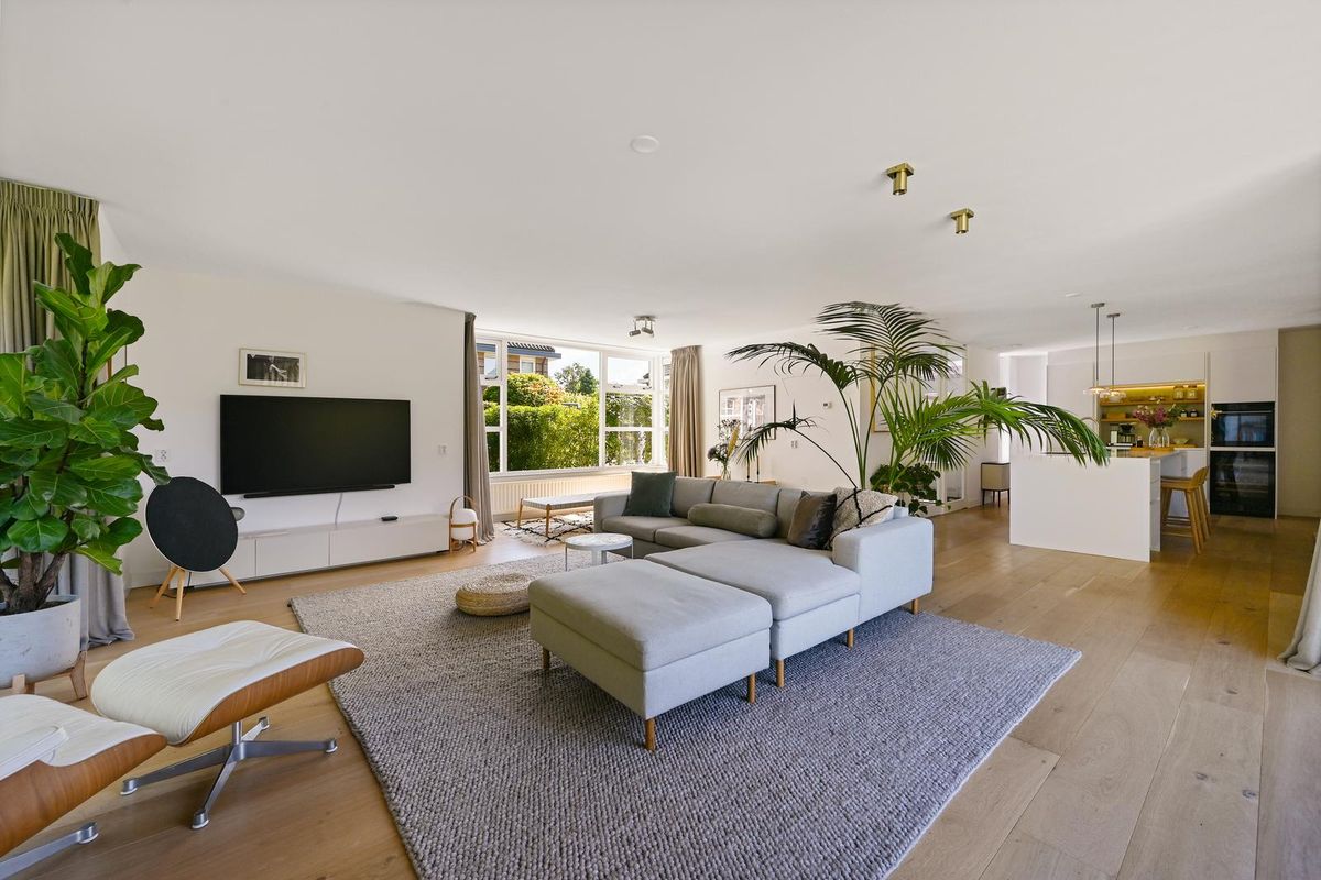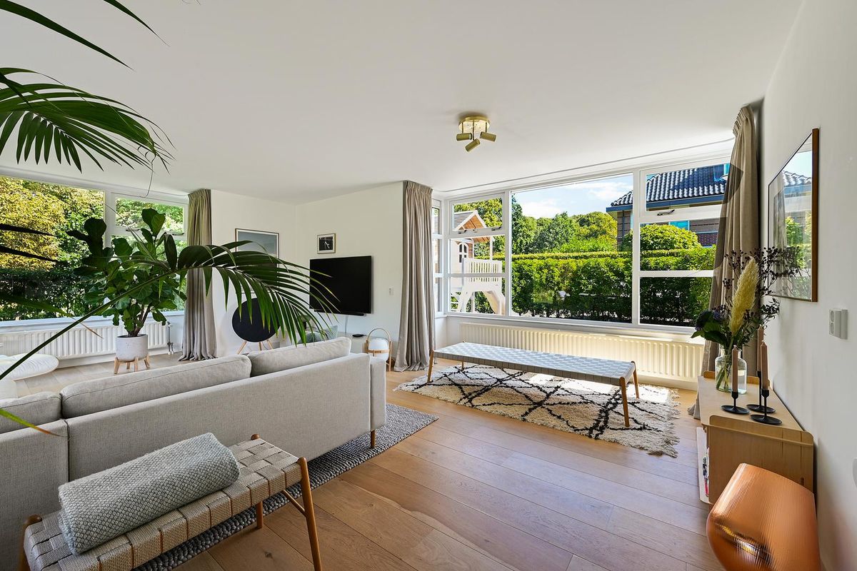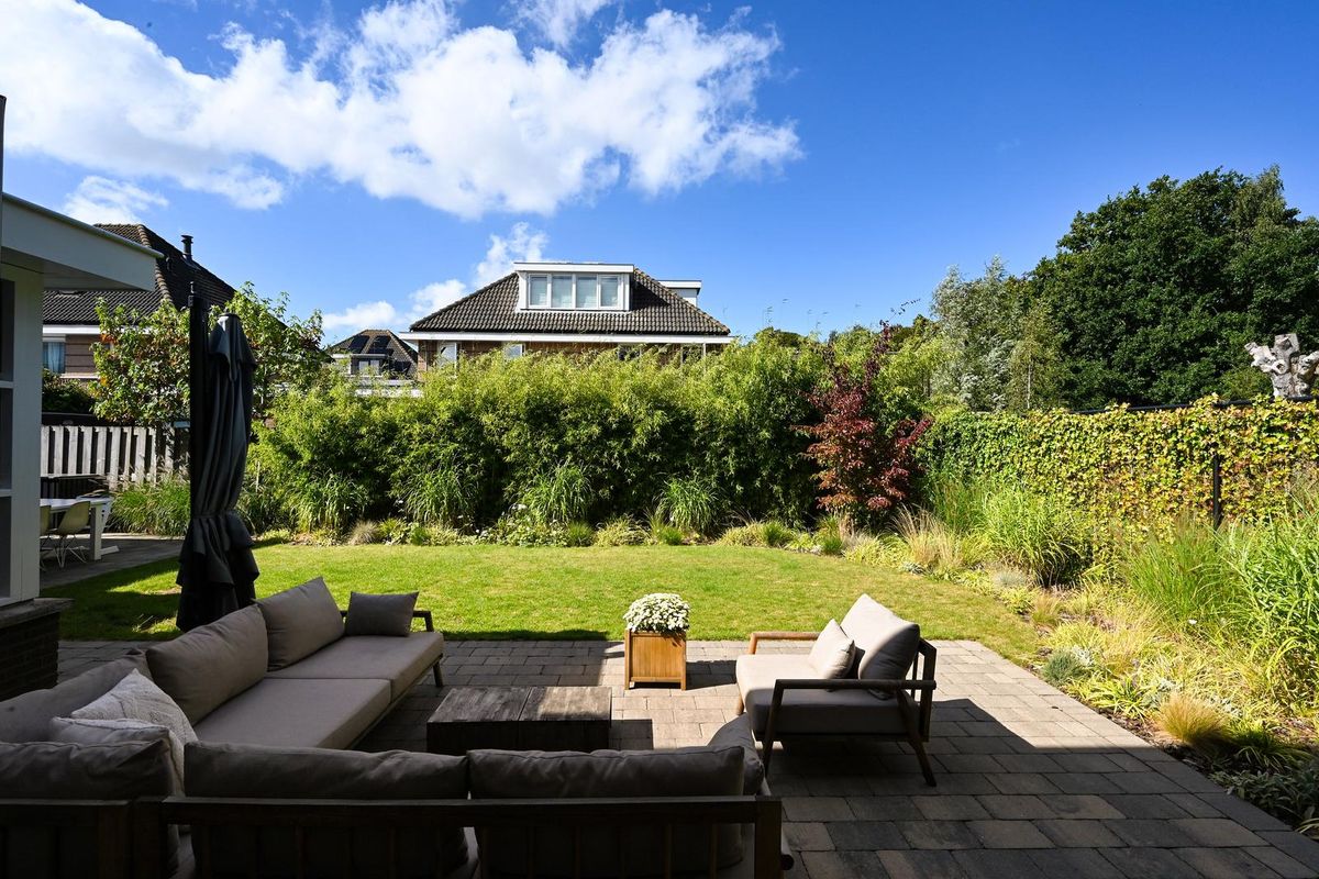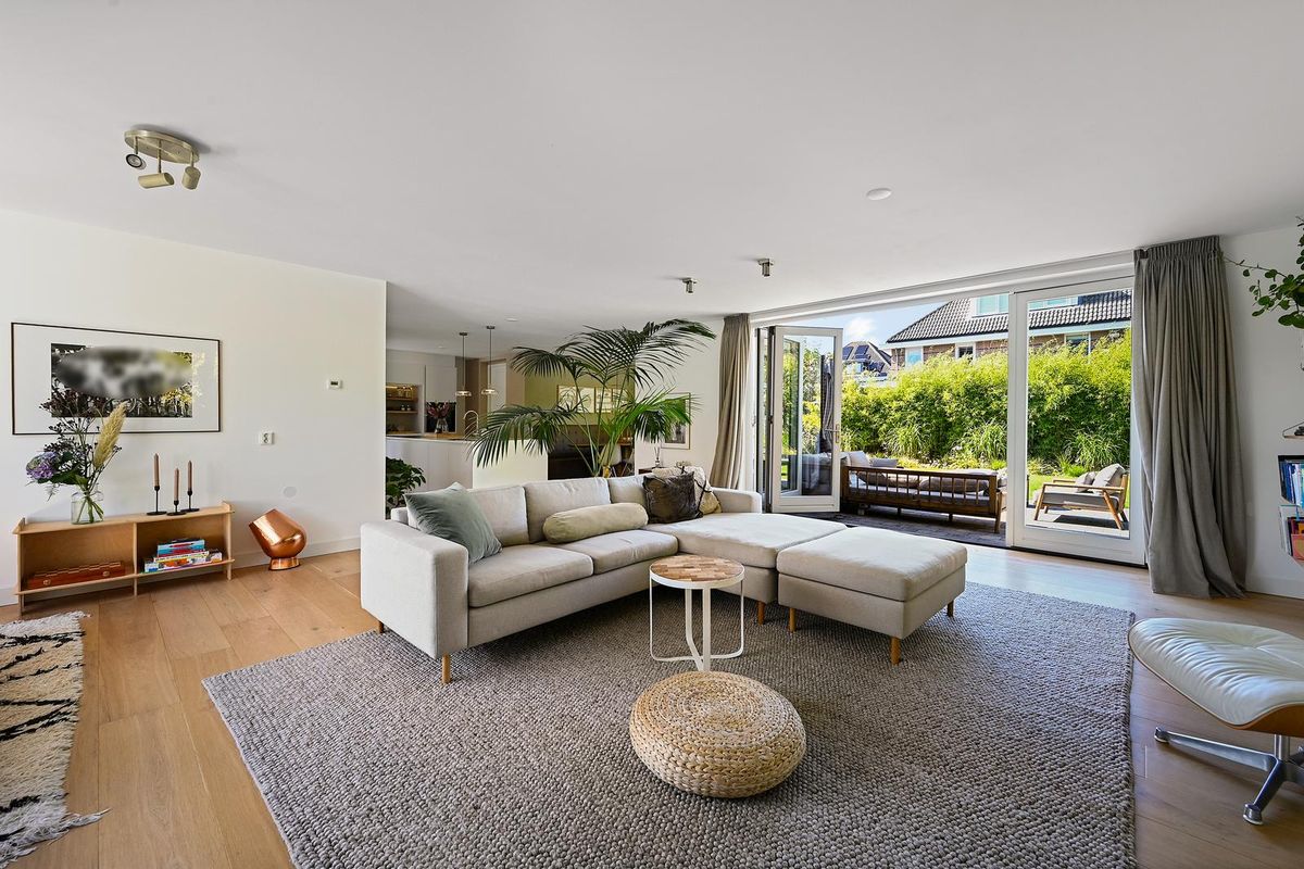 Via openslaande deuren komt u in de living, waar de erker aan voor- en zijgevel zorgt voor veel licht en zicht op de tuin. De royale indeling en de openslaande deuren naar de zonnige achtertuin maken dit een heerlijke leefruimte. De tuin is fraai aangelegd met loungehoek en een apart terras voor een eettafel, ideaal om te dineren in de middag- en avondzon.