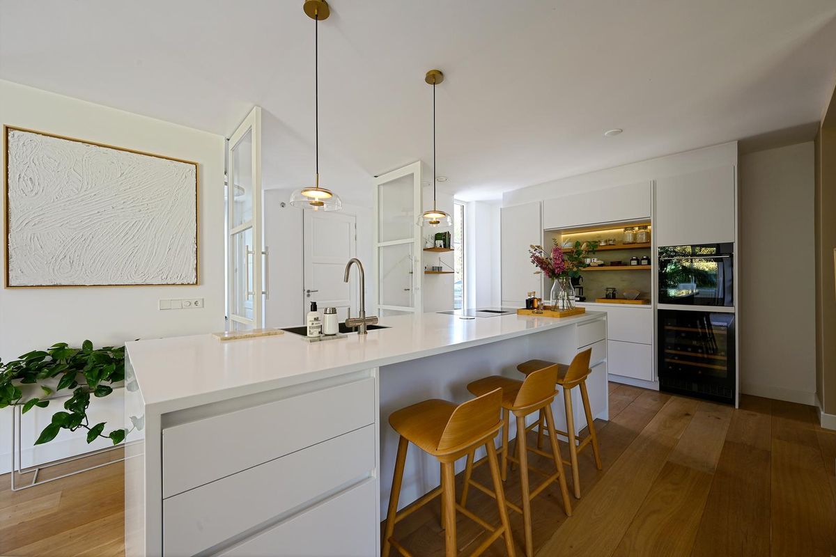 Het hart van de woning is de luxe open keuken met riant kookeiland en hoogwaardige inbouwapparatuur. Hier wordt koken een waar genoegen, terwijl u altijd in contact blijft met familie of gasten in de living of aan de eettafel.