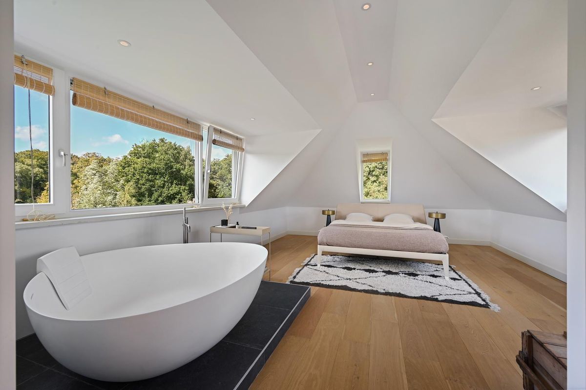 De gehele verdieping is ingericht als een ware hotelsuite. Hier vindt u de royale masterbedroom met sfeervol vrijstaand ligbad en een ruime inloopkast. Dankzij de dakkapellen aan voor-, zij- en achterzijde is de kamer heerlijk licht en ruimtelijk.
