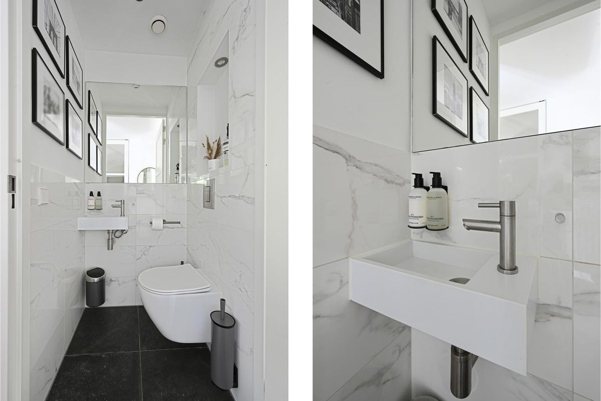 Bij binnenkomst ervaart u direct de wow-factor: strak stucwerk, een warme parketvloer en een lichte hal met modern toilet (nis, hangcloset, inbouwreservoir en fonteintje). Meterkast (12 groepen).