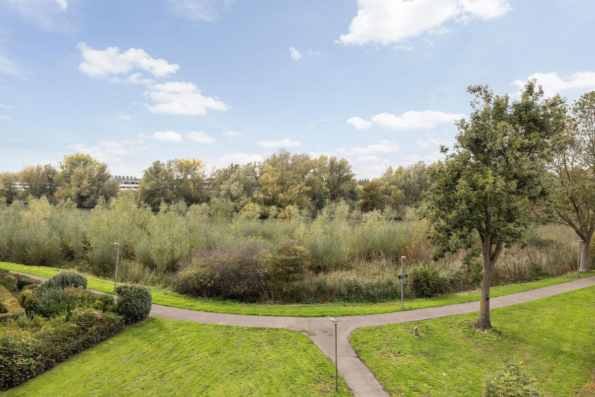 Het royale terras van circa 12m² ligt op het westen en biedt een weids uitzicht over groen en water. Een heerlijke plek om van de middag- en avondzon te genieten. Het terras is voorzien van een zonwering.