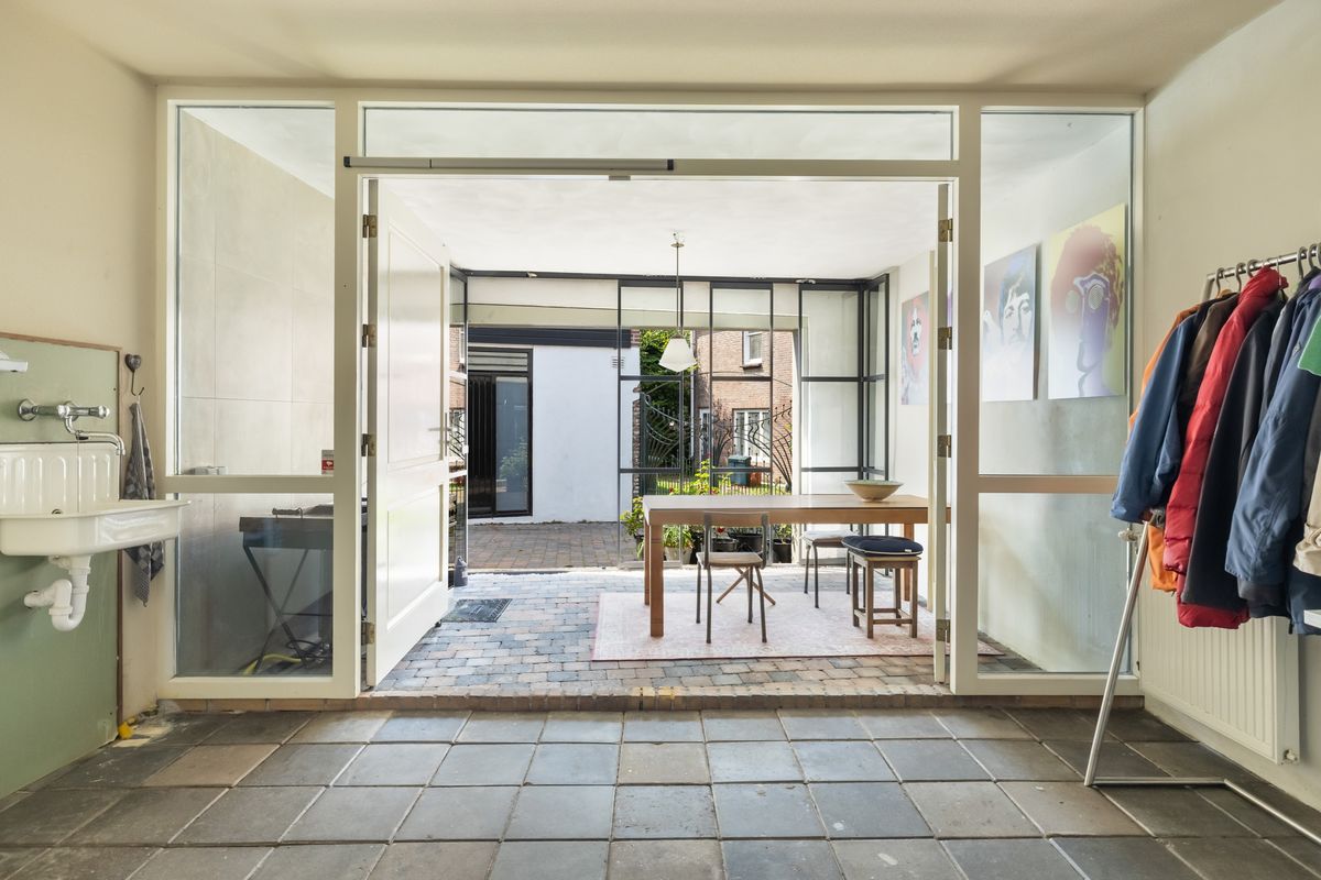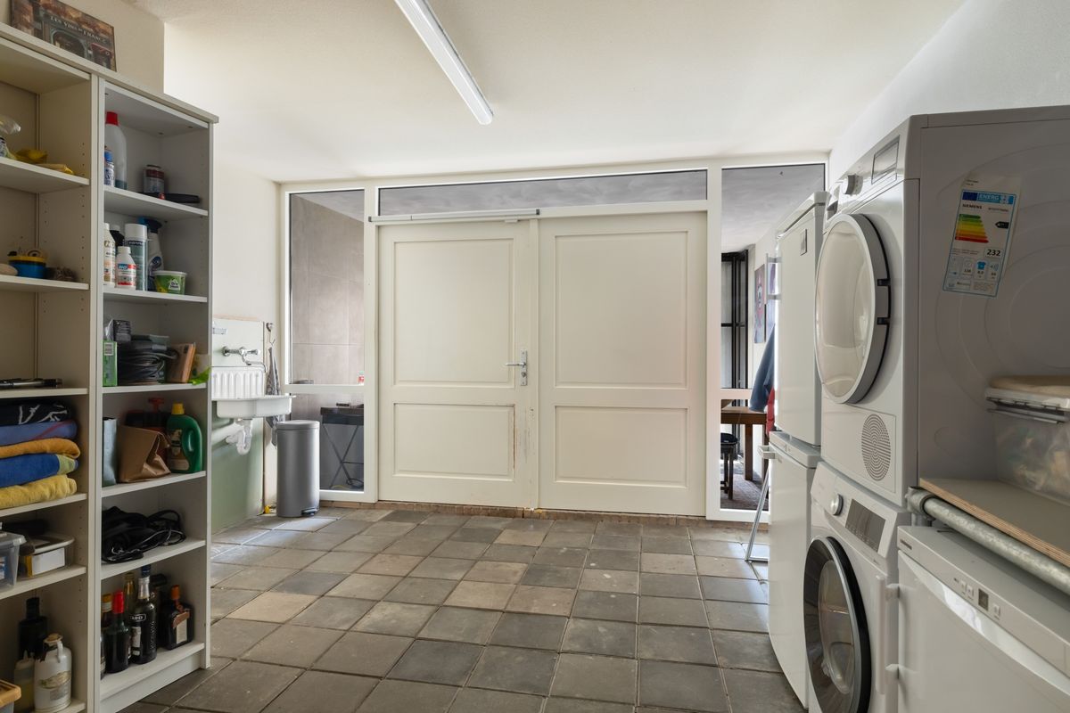 Het souterrain bevindt zich op het niveau van de achtertuin. Hier treft u de praktische berging / bijkeuken met trapkast, gootsteen, wasmachine opstelplaats en toegang naar de kelder. Het souterrain heeft stucwerk op de wanden en is voorzien van een betontegel vloerafwerking. De dubbele deuren geven toegang tot een unieke patio-achtige ruimte. Deze multifunctionele ruimte is volledig omsloten en overdekt, waardoor er het hele jaar gebruik van kan worden gemaakt – ideaal als rustige leeshoek, groene binnentuin, of extra zitruimte.