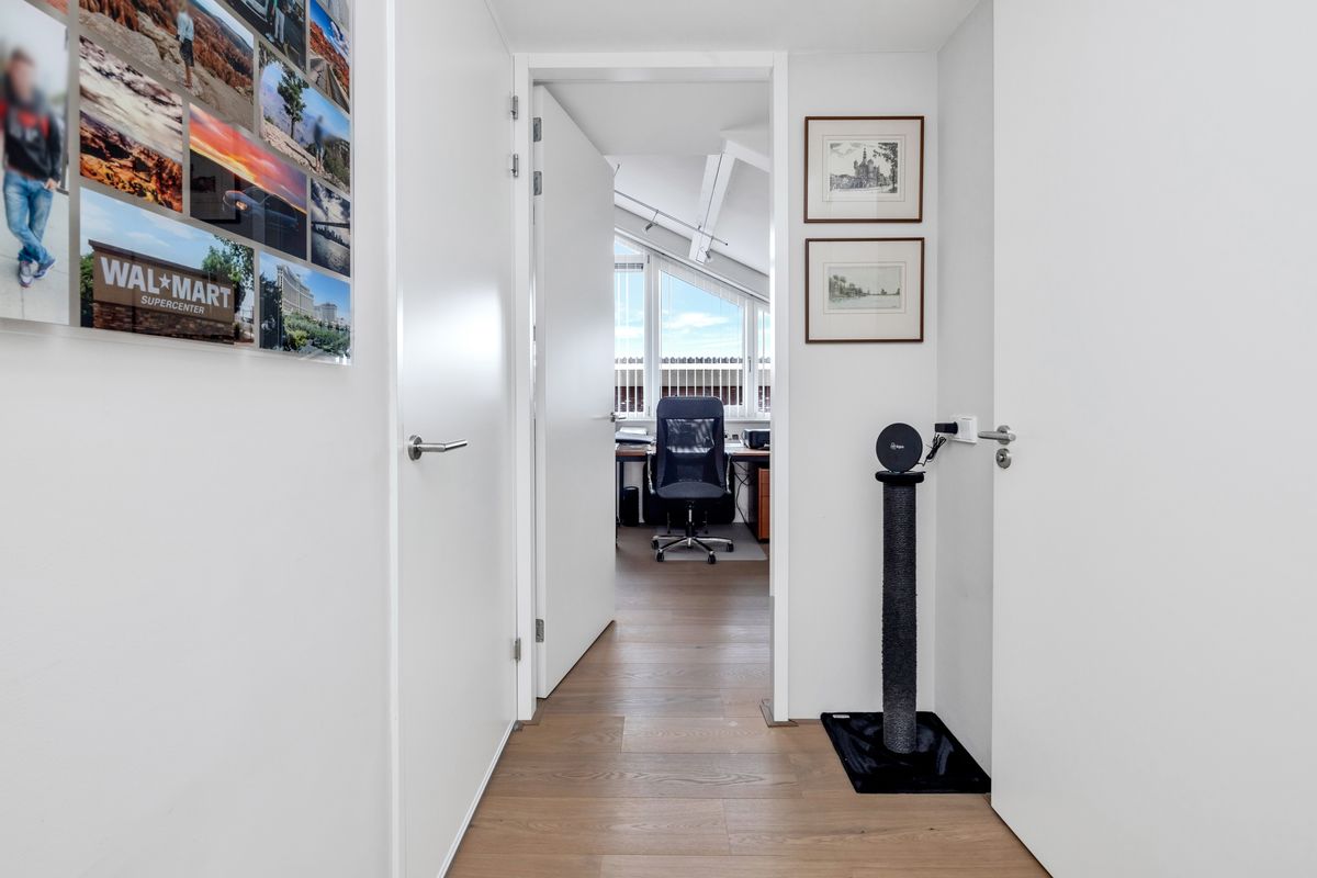 • Hoofdslaapkamer: gelegen aan de voorzijde, met extra verdieping (entresol), strak gestuukte wanden en lamelparketvloer.