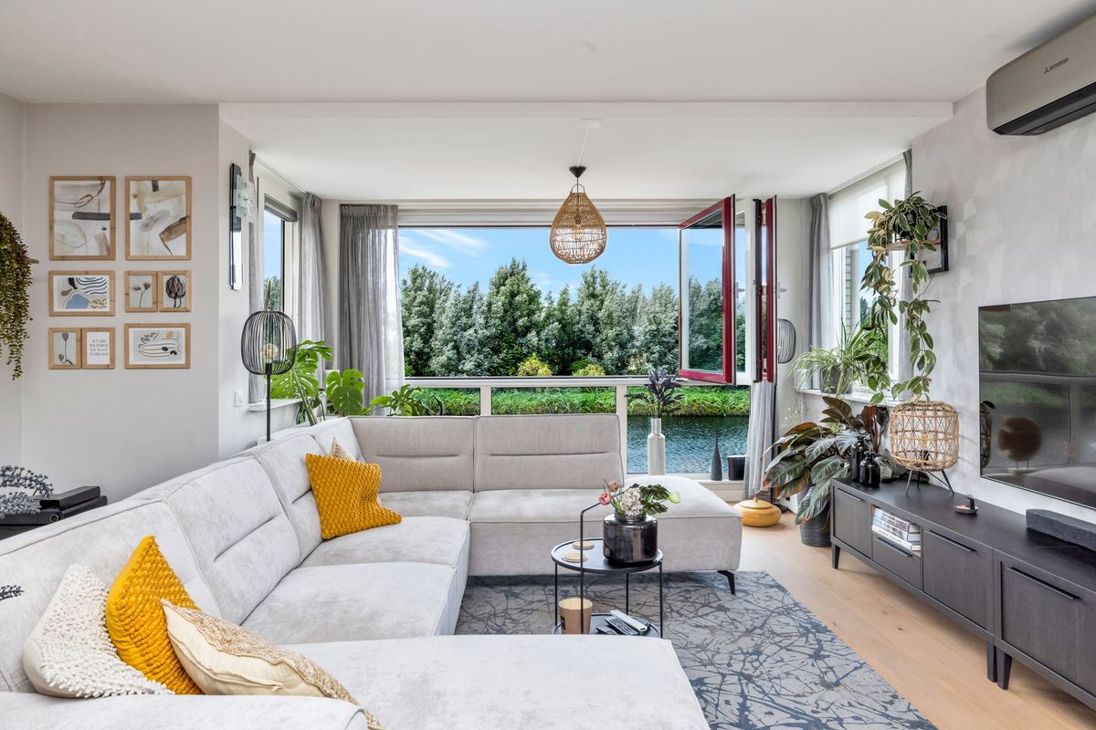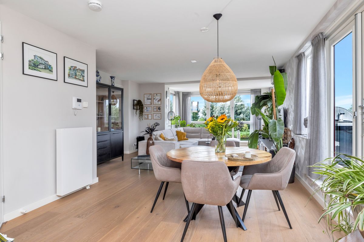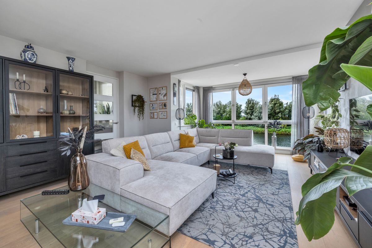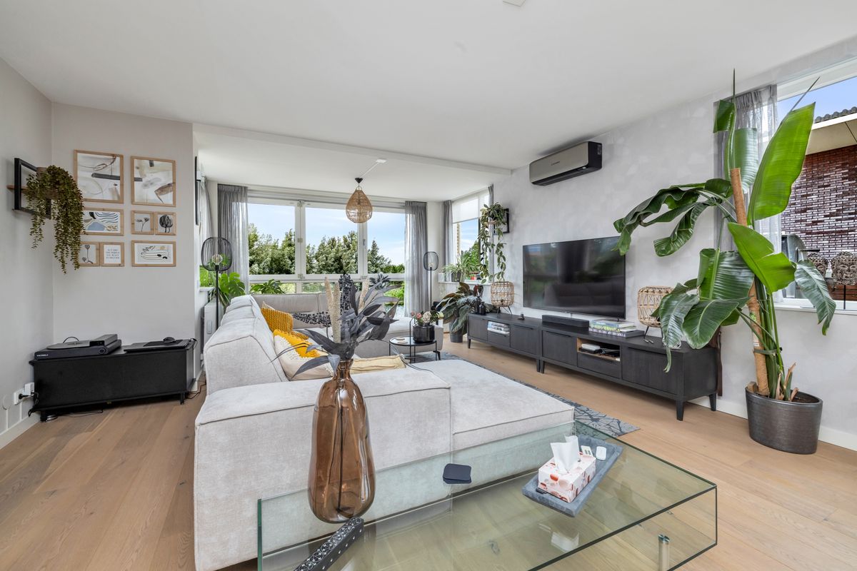 De royale woonkamer is een lichte, uitnodigende ruimte met grote raampartijen en prachtig uitzicht. De vloer is voorzien van een stijlvolle lamelparketvloer en de wanden en plafonds zijn strak afgewerkt de woonkamer is voorzien van air-conditioning. Openslaande deuren geven toegang tot het ruime dakterras – de perfecte plek om te genieten van het buitenleven.