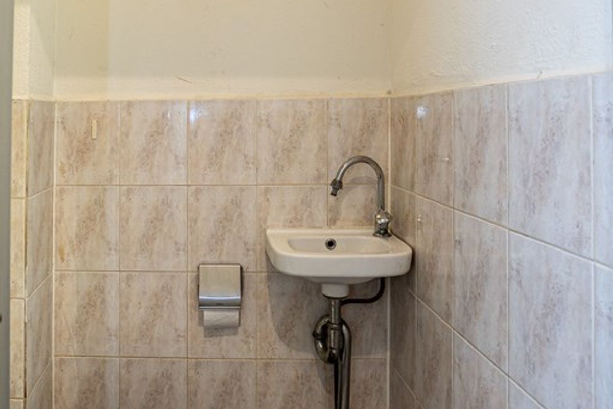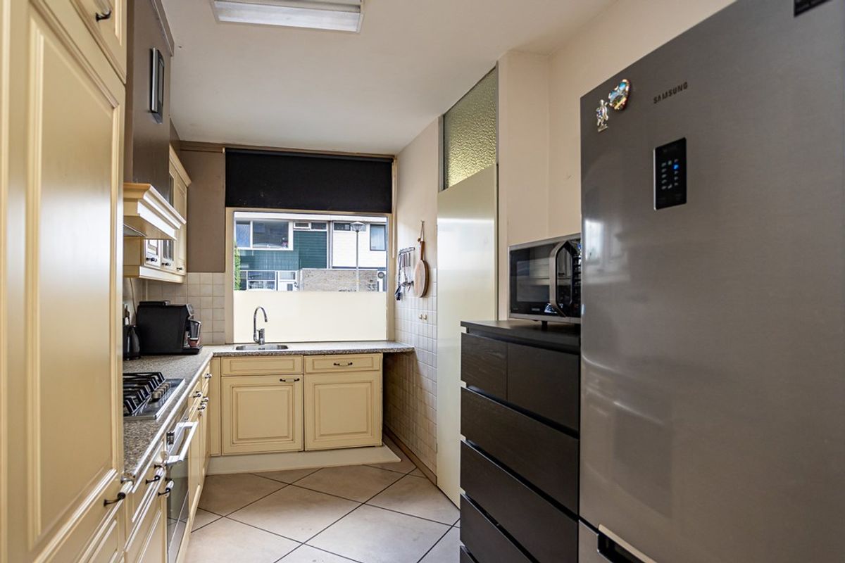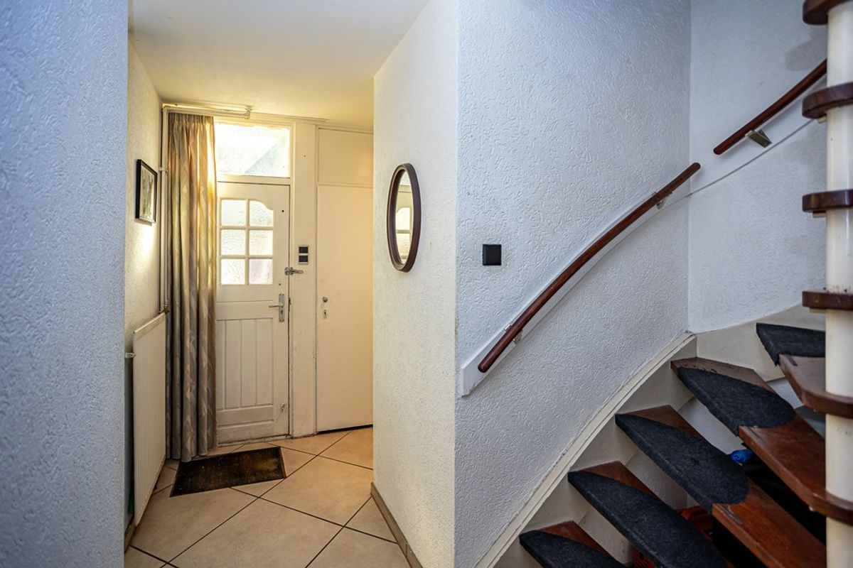 Begane grond: hal/entree met bergkast, toilet met fontein, halfopen keuken met keukenblok in hoekopstelling met diverse inbouwapparatuur, eet-/woonkamer met plavuizenvloer en toegang tot de tuin.