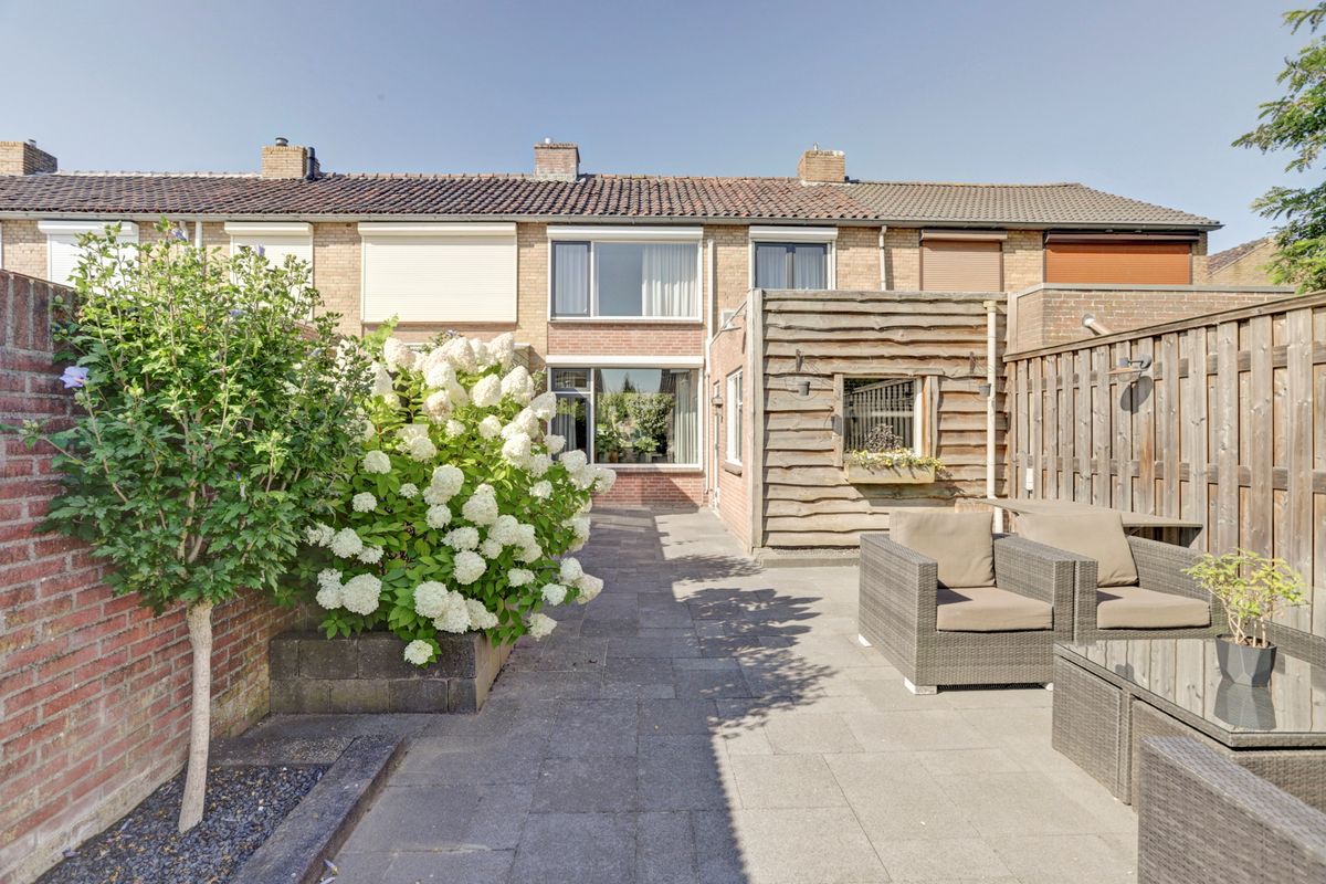 De voortuin is netjes aangelegd en geeft de woning een verzorgde uitstraling. De diepe achtertuin is een oase van rust, met volop zon en privacy. Achterin de tuin vind je twee ruime bergingen, waarvan één is ingericht als praktische bijkeuken met wasmachineaansluiting en spoelbak.