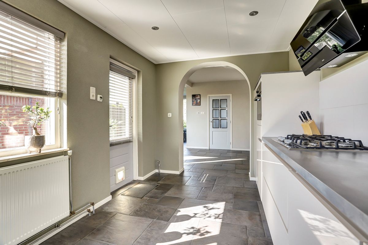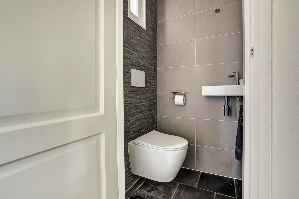 Bij binnenkomst tref je een nette hal met trapopgang, kelderkast en vernieuwde meterkast. Het moderne toilet is strak afgewerkt. De sfeervolle L-vormige woonkamer is voorzien van een tegelvloer met comfortabele vloerverwarming. Aan de achterzijde bevindt zich de luxe open keuken, uitgerust met moderne inbouwapparatuur en volop kastruimte.