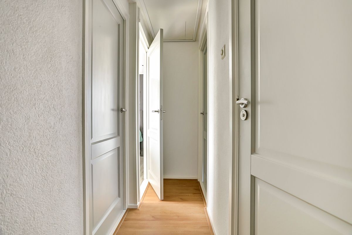 Op de overloop ligt een mooie laminaatvloer die doorloopt in de drie slaapkamers. De kamers zijn stuk voor stuk netjes afgewerkt, waarvan twee beschikken over praktische vaste kasten. De moderne badkamer is uitgerust met elektrische vloerverwarming, een ligbad, aparte douche, wastafelmeubel en wandcloset.