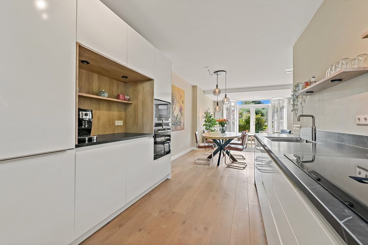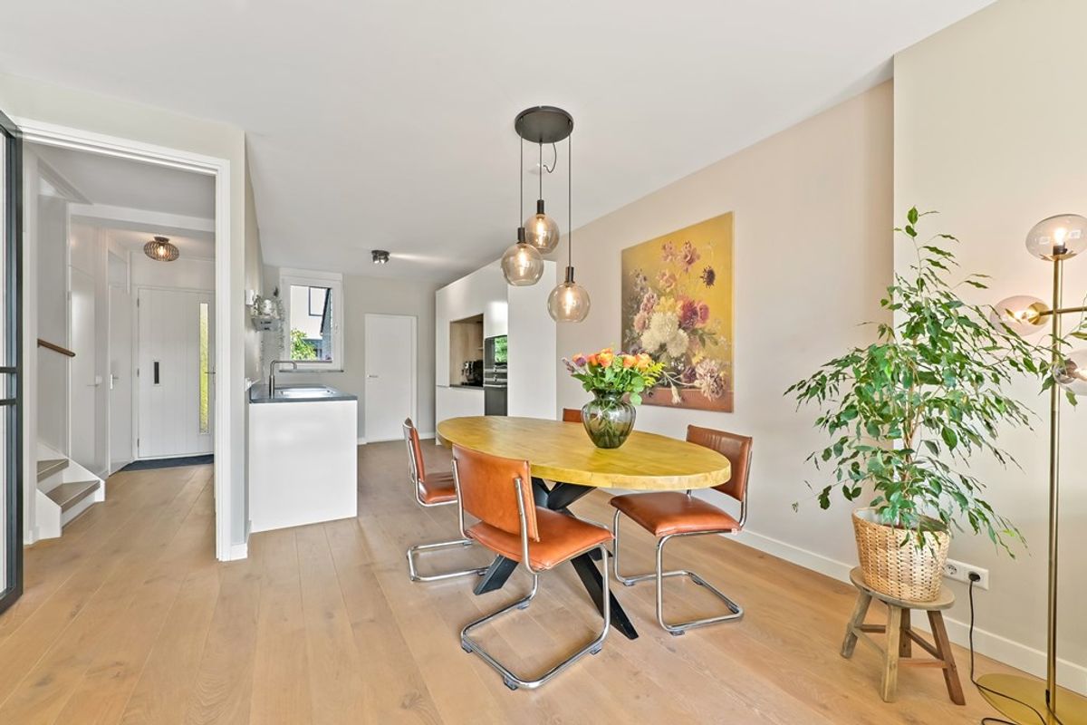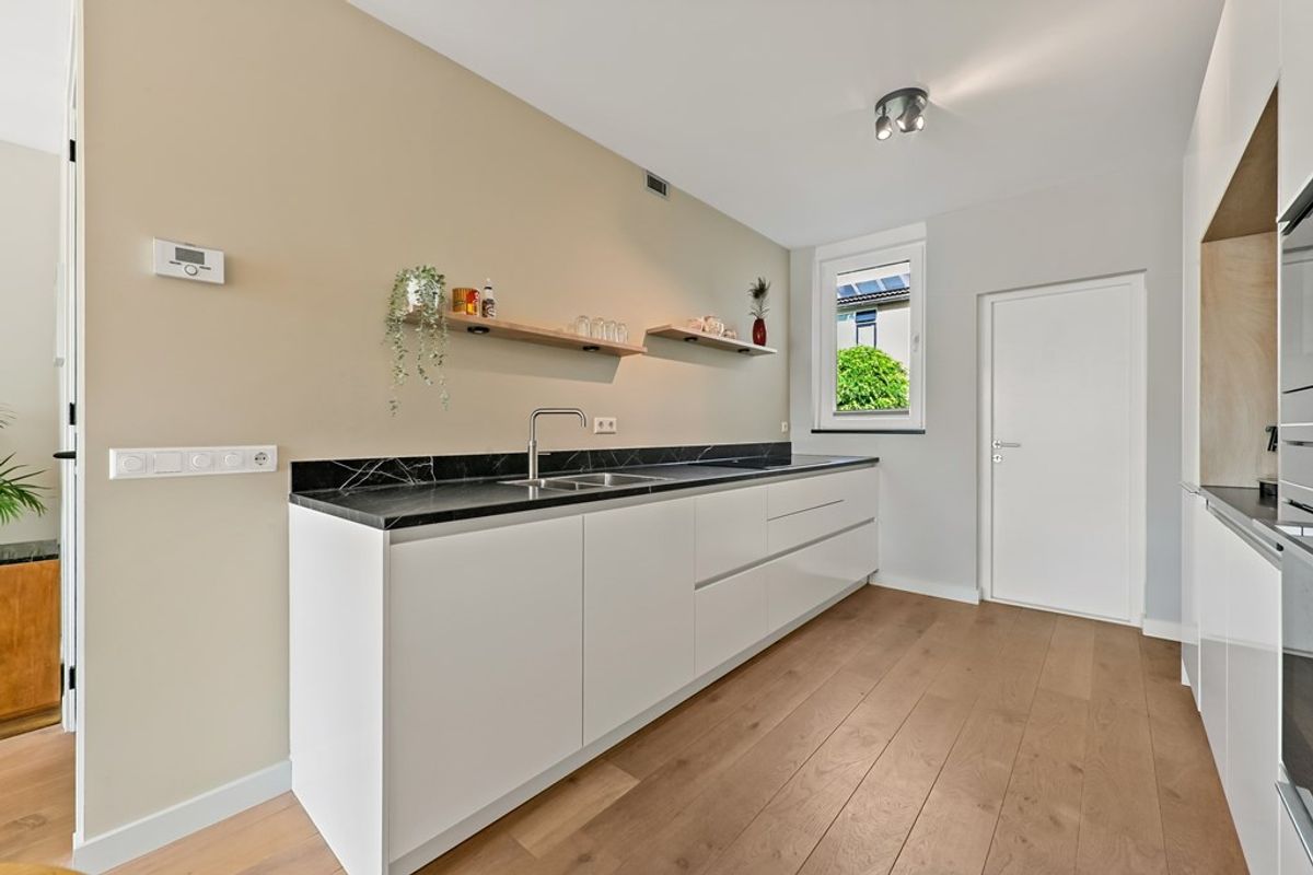 Aan de voorzijde van de woning komen we via de fraai aangelegde voortuin bij de woning. Ook is hier toegang tot de aangebouwde berging. Lichte hal met gemoderniseerde meterkast, geheel betegeld toilet met fonteintje, trap naar verdieping en praktische trapkast waar de verdeler van de vloerverwarming zich bevindt. De woonkamer met airconditioning is een hele fijne en sfeervolle ruimte met veel lichtinval. De fraaie eiken vloerdelen benadrukken de lengte van het huis. De strak gestucte wanden en plafonds maken het geheel af. Aan de achterzijde van de woning is een aanbouw met extra zijraam geplaatst. Via de dubbele deuren is de fraai aangelegde achtertuin te bereiken, welke grenst aan water. De achtertuin is dankzij de hoekligging breder als bij de tussengelegen woningen. Via een deur aan de zijkant wordt de achtertuin ontsloten naar het Heemraad. Aan de voorzijde van de woning is de ruim opgezette, moderne woonkeuken (2022) opgesteld in een zogenaamde parallel opstelling. Aan de linkerzijde bevindt zich het kook- en spoelgedeelte met een inductiekookplaat met werkbladafzuiging, de vaatwasser en Quooker kraan. Aan de andere zijde is een hoge kastenwand met koelkast, oven, magnetron en koffiecorner geplaatst. De keuken staat in rechtstreekse verbinding met de eettafel en vormt daardoor een extra fijne plek. De berging aan de voorzijde is zowel van buitenaf als vanuit de woning bereikbaar, waardoor de berging functioneert als praktische bijkeuken.