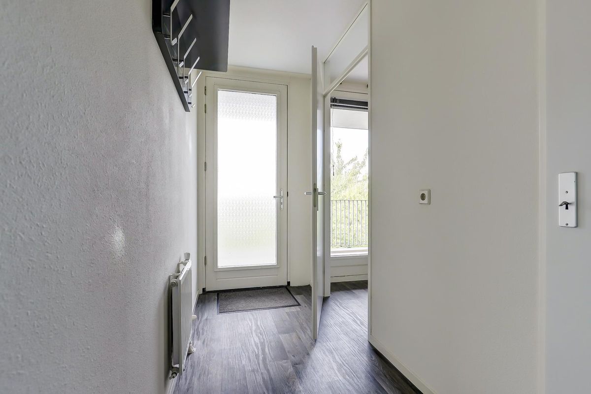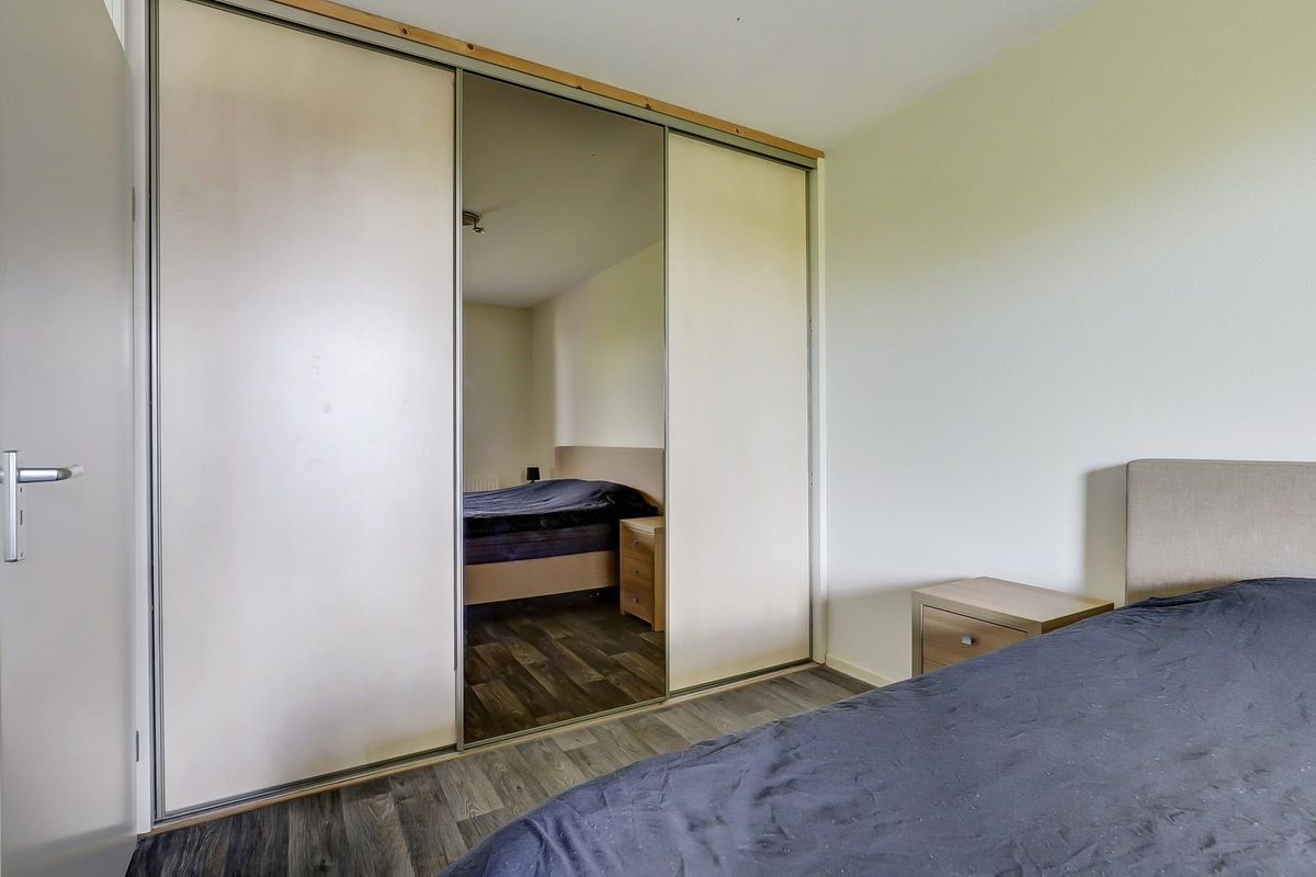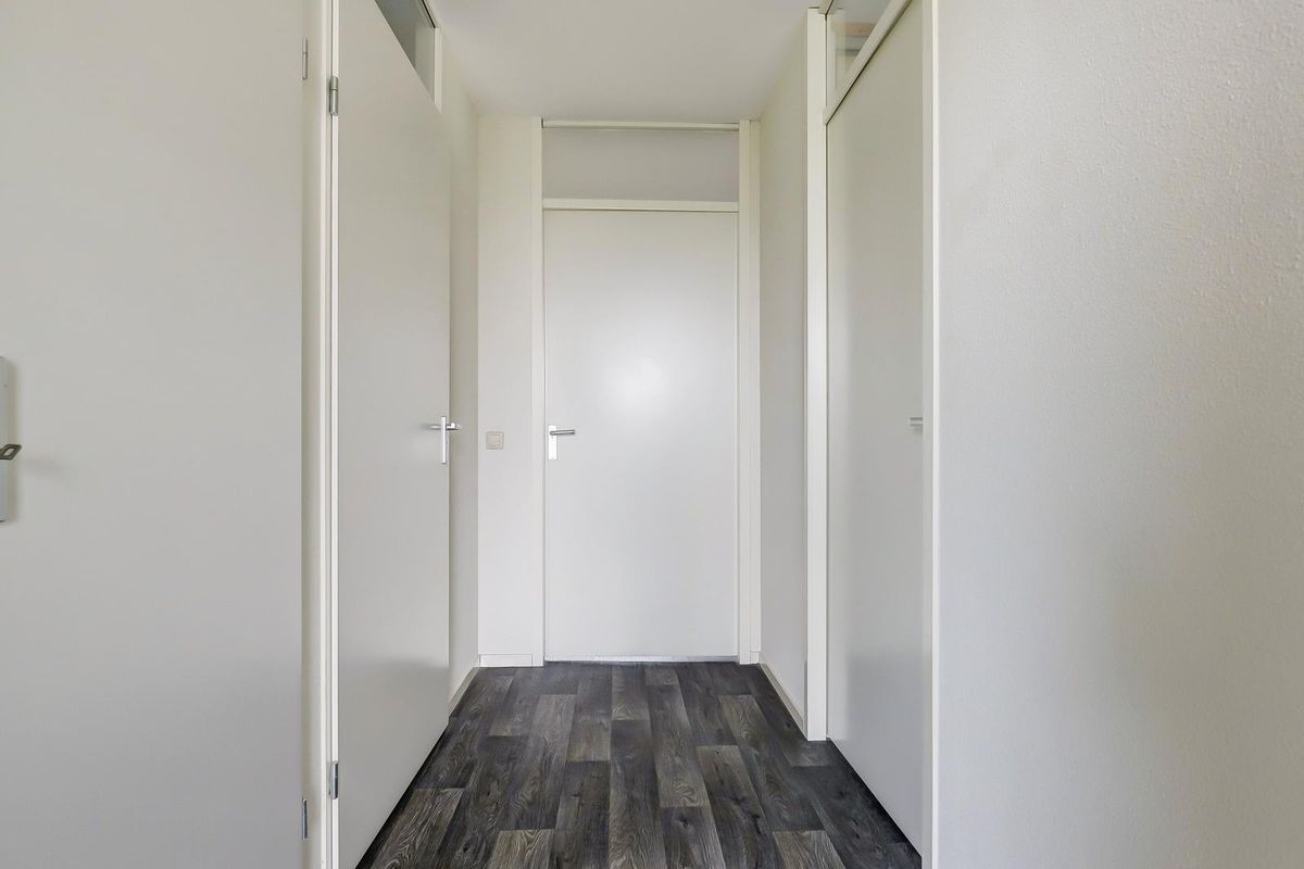 Bij binnenkomst word je verwelkomd in een ruime hal met de meterkast. De hal is voorzien van een moderne vinylvloer, welke doorloopt in het gehele appartement en zorgt voor een verzorgde uitstraling. Vanuit de hal bereik je de verschillende vertrekken. Er is een ruime hoofdslaapkamer met een handige schuifkastenwand voor al je kleding en spullen. De tweede slaapkamer heeft een extra bergkast, waar tevens de cv-combiketel (Remeha Avanta 2017) en de mechanische ventilatie-unit zich bevinden. Beide kamers zijn gelegen aan de voorzijde van het appartement. De badkamer bevindt zich in het midden en is uitgerust met een douchehoek, een wastafelmeubel, een toilet en een handige opstelplaats voor de wasmachine.