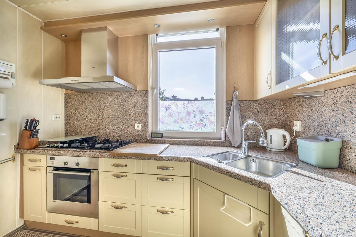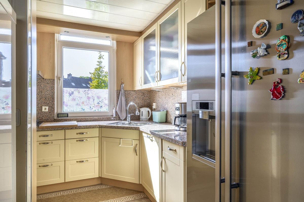De nette open keuken is uitgerust met inbouwapparatuur, waaronder een 5-pits gaskookplaat, afzuigkap, magnetron, oven, vaatwasser en een koel-/vriescombinatie. Daarnaast biedt de keuken voldoende opbergruimte, waardoor alles netjes en overzichtelijk kan worden opgeborgen.