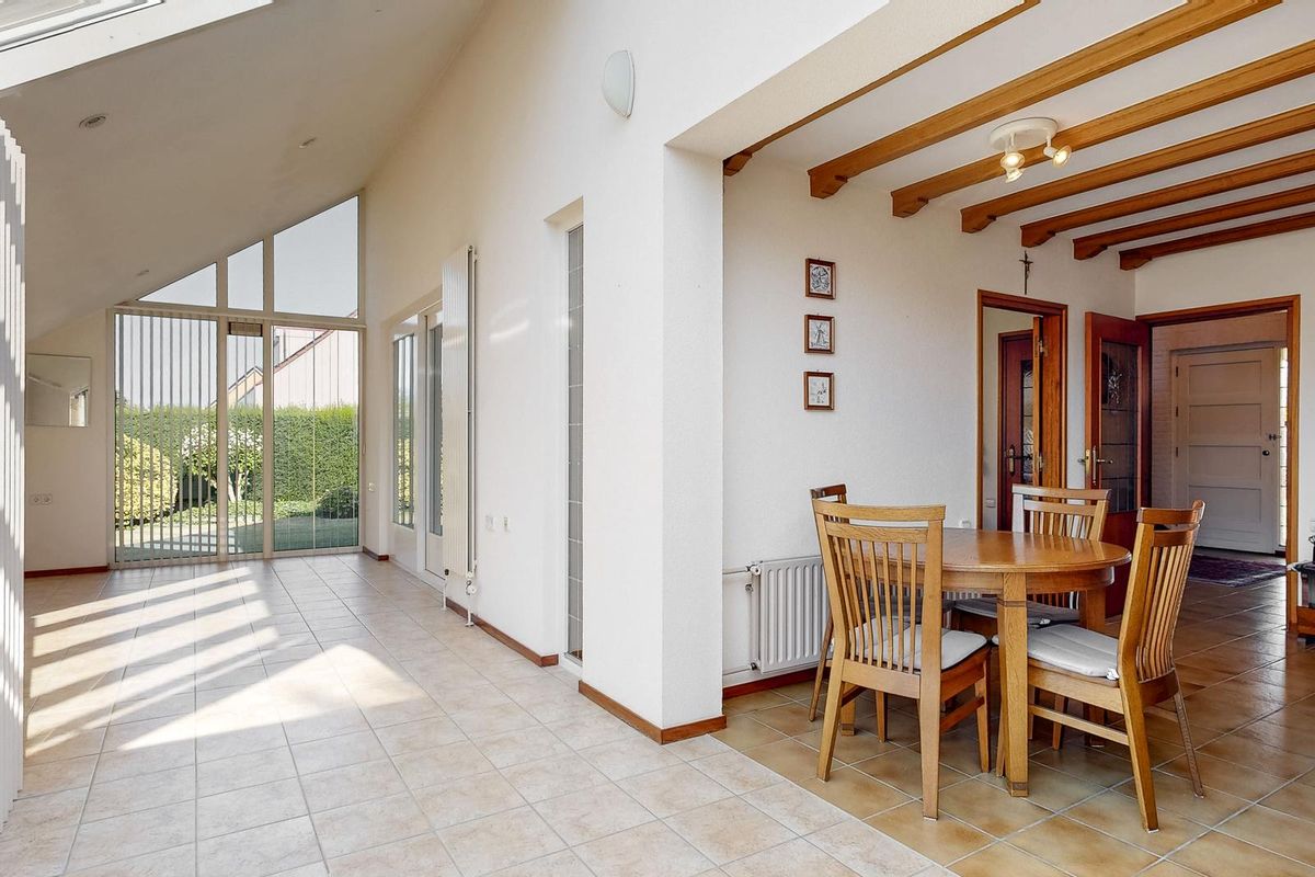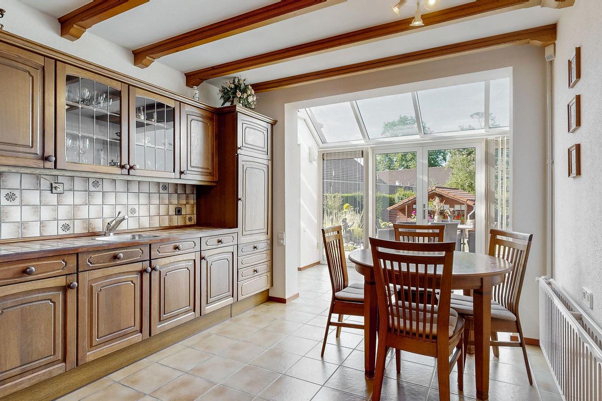 Vanuit de keuken is er tevens een openverbinding met de aangebouwde lichte tuinserre (en tuinkamer) met wederom mooi uitzicht op de achtertuin.