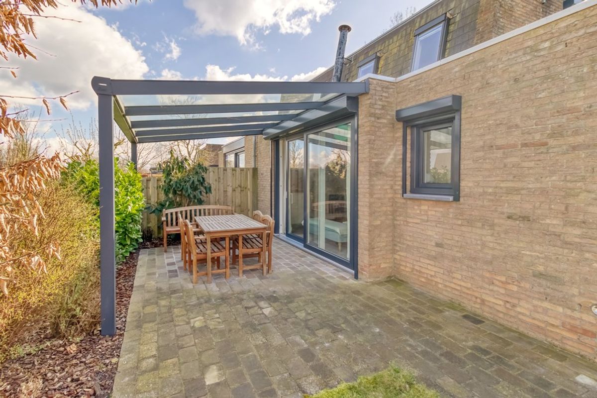 De tuin is voornamelijk gelegen op het westen waar u heerlijk kunt genieten van de zon. Er is een terrasoverkapping met verlichting van 3 bij 4,25 meter en in de tuin staat een tuinhuis. Direct voor de woning is er op eigen terrein parkeerplaats voor 2 auto’s.