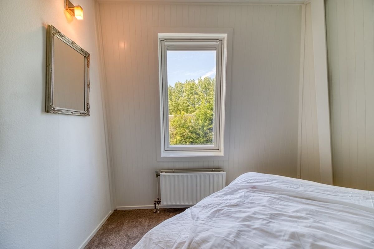 Via de wenteltrap in de woonkamer is de eerste verdieping te bereiken. Hier bevindt zich een ruime overloop met extra slaapgelegenheid en 2 aparte slaapkamers.