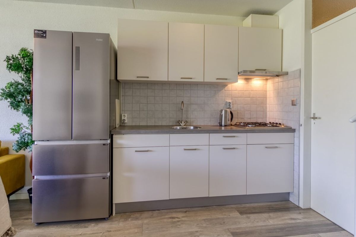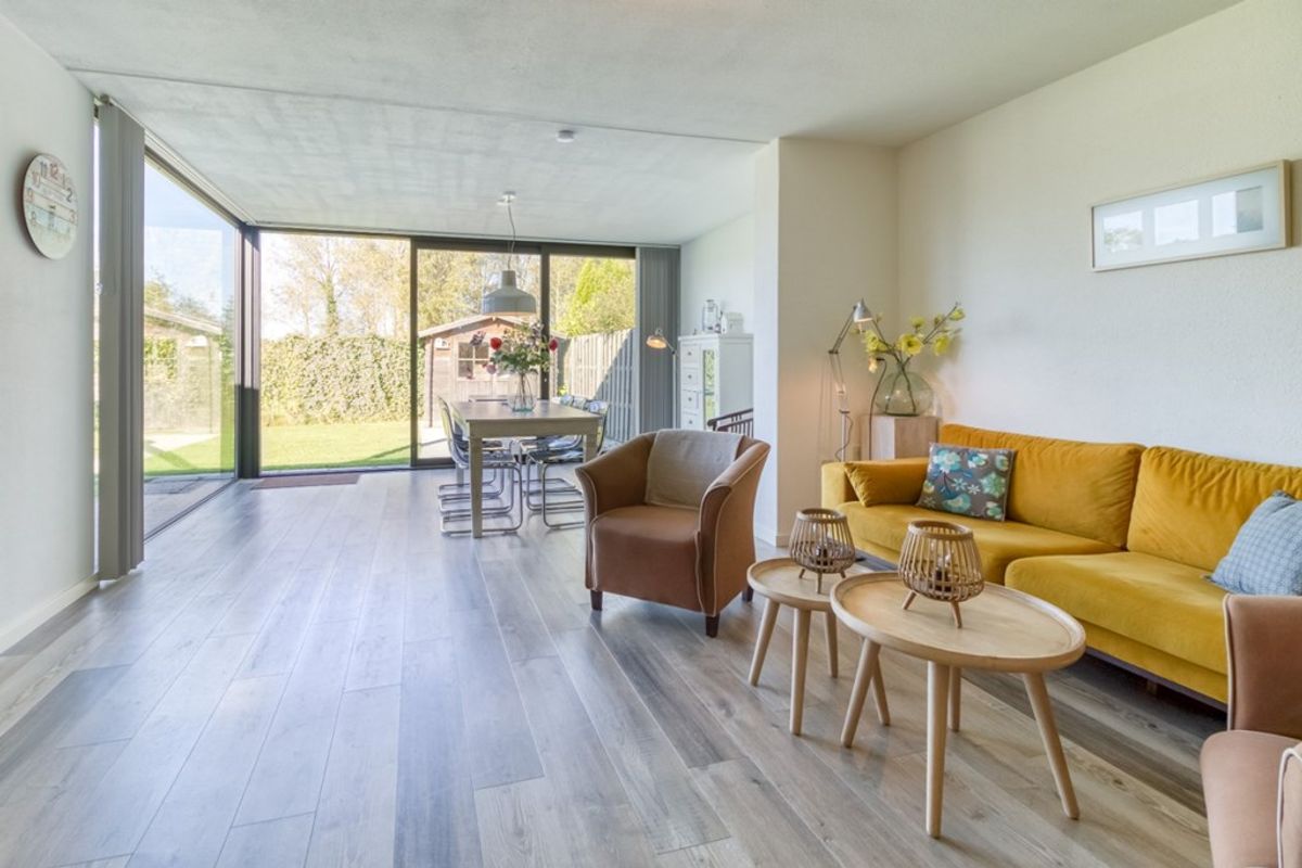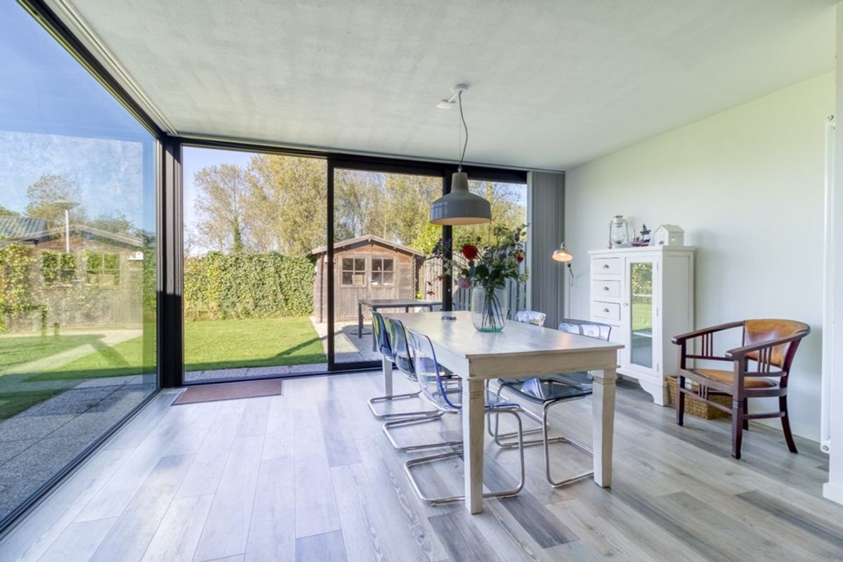 Via de entree komt u in de hal met meterkast en ruimte voor de garderobe. Vanuit de hal is er toegang tot de badkamer, een apart toilet met fonteintje en de woonkamer. De badkamer is voorzien van douche en wastafel. De woonkamer met zit- en eethoek is uitgebouwd waardoor er veel extra woonoppervlakte is ontstaan. Deze aanbouw bestaat uit veel glas waardoor het aangenaam licht is en er mooi zicht is op de tuin. Door de extra ruimte is er plaats voor een grote eettafel waar u met heel de familie heerlijk kunt onbijten of dineren. De keuken is voorzien van; 4-pits gaskookplaat, afzuigkap, spoelbak en luxe koel/vriescombinatie. Naast de keuken bevindt zich de bijkeuken met vaatwasmachine, magnetron, wasmachine en ruimte voor het opbergen van huishoudelijke spullen.