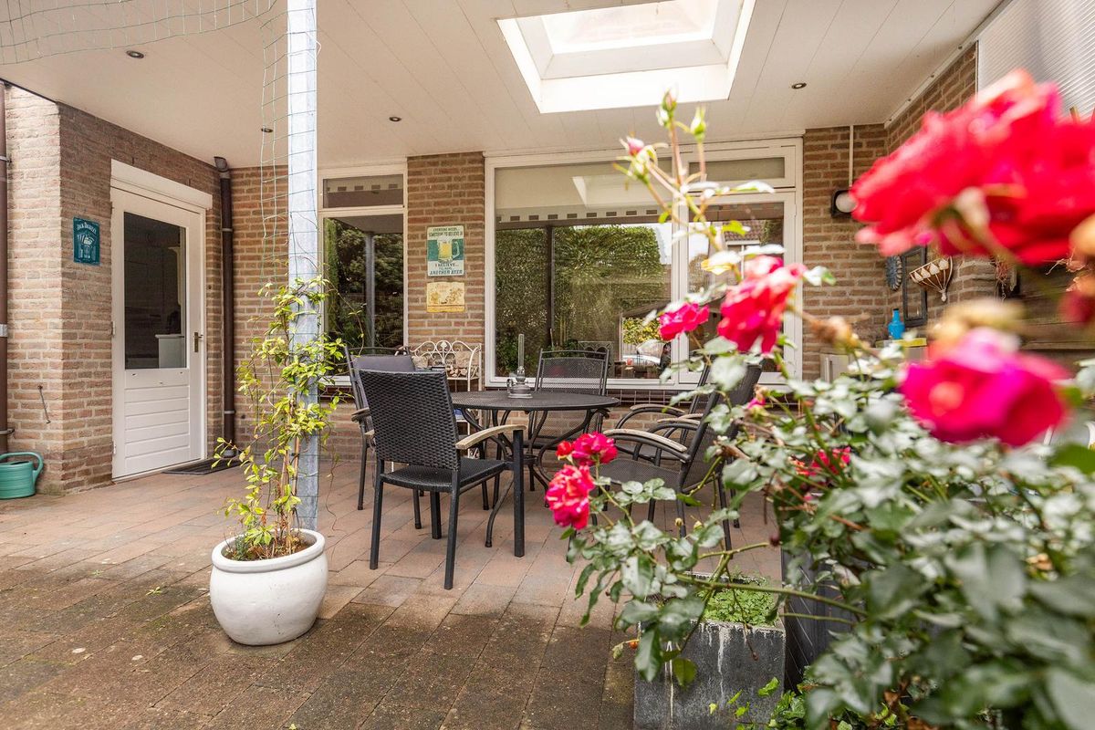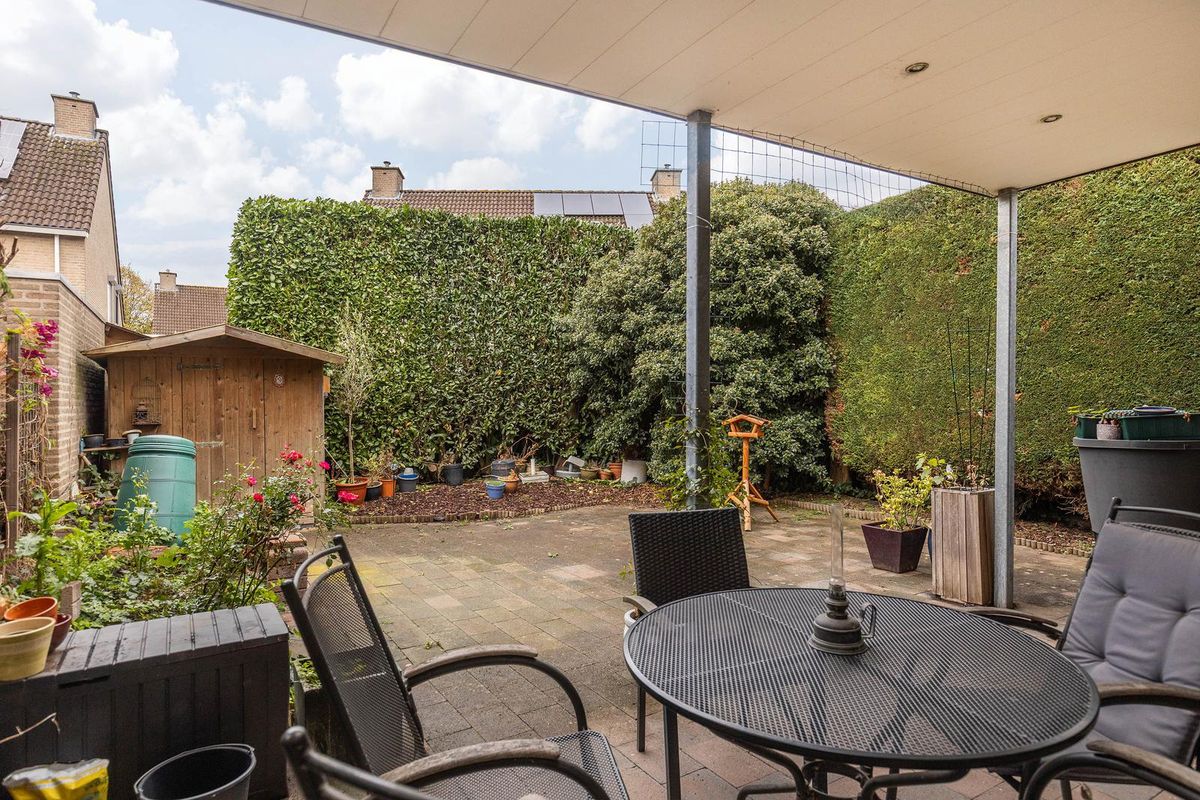Gezellige tuin op het zuidwesten, met tuinhuis en royaal overdekt terras. De tuin biedt zeer veel privacy.