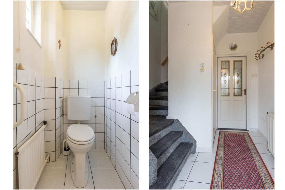 Entree, hal met tegelvloer, meterkast en een halfhoog betegelde toiletruimte voorzien van een staand closet.