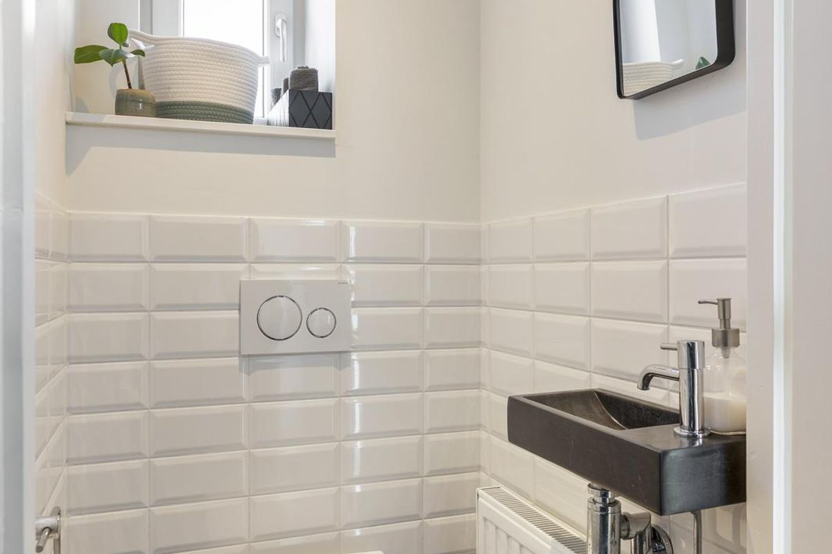 Entree, hal, gemoderniseerde meterkast, toiletruimte voorzien van hangcloset en fontein.