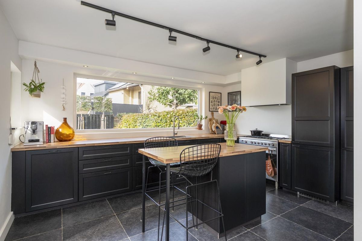 Vanuit de keuken en woonkamer heeft u mooi zicht over de aangelegde tuin.