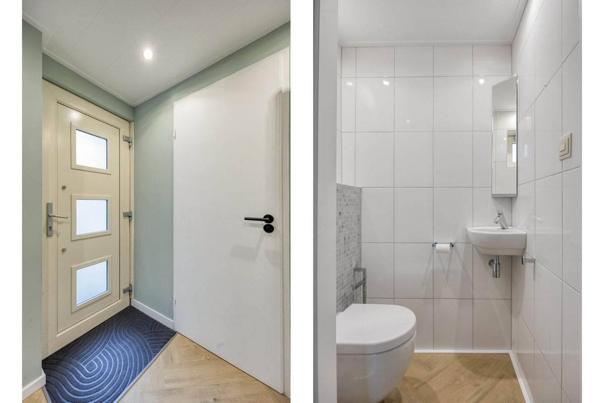 Je parkeert je auto makkelijk op de eigen oprit of in de rustige straat. Bij binnenkomst word je direct verrast door de lichtinval in de entree, dankzij de raampartijen in de voordeur. Hier voel je je meteen welkom. Vanuit de hal heb je toegang tot een ruim separaat toilet, een grote slaapkamer op de begane grond, en natuurlijk tot de woonkamer en keuken. Daarnaast is vanuit binnen ook de berging bereikbaar, die zich aan de voorzijde van de woning bevindt en eveneens van buitenaf toegankelijk is.