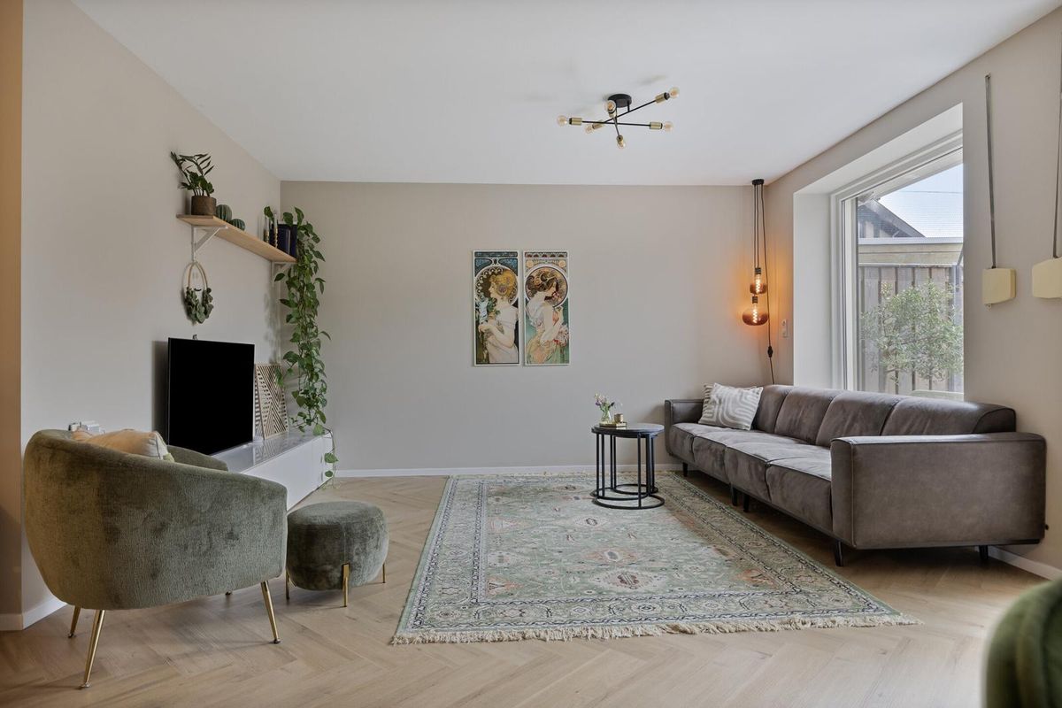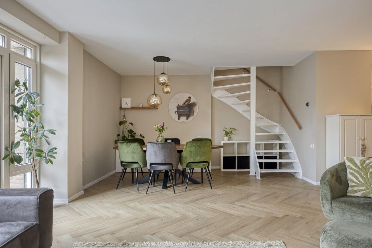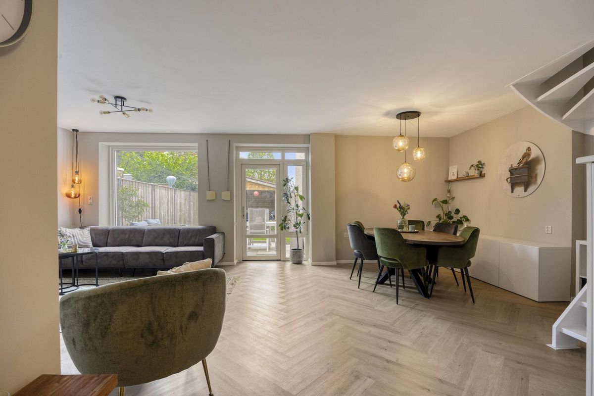 Aan de achterzijde van de woning vind je de lichte en ruime woonkamer, waar grote raampartijen zorgen voor een zee aan daglicht. De ruimte is zó ingedeeld dat je moeiteloos een royale zithoek én een grote eettafel kunt plaatsen. Hier komen gezelligheid, ontspanning en samenzijn naadloos samen. Denk aan filmavonden, lange diners met vrienden of een rustige ochtend met een kop koffie in het zonnetje dat naar binnen valt. De open keuken ligt aan de voorzijde van de woning en is keurig afgewerkt met witte kastfronten en voldoende werkruimte. Dankzij het raam aan de straatzijde kook je hier met daglicht op je gezicht. De keuken is voorzien van een gasfornuis, combi-oven/magnetron, koel-vriescombinatie, en vaatwasser, alles wat je nodig hebt om de lekkerste maaltijden op tafel te zetten. Een praktische én sfeervolle plek!