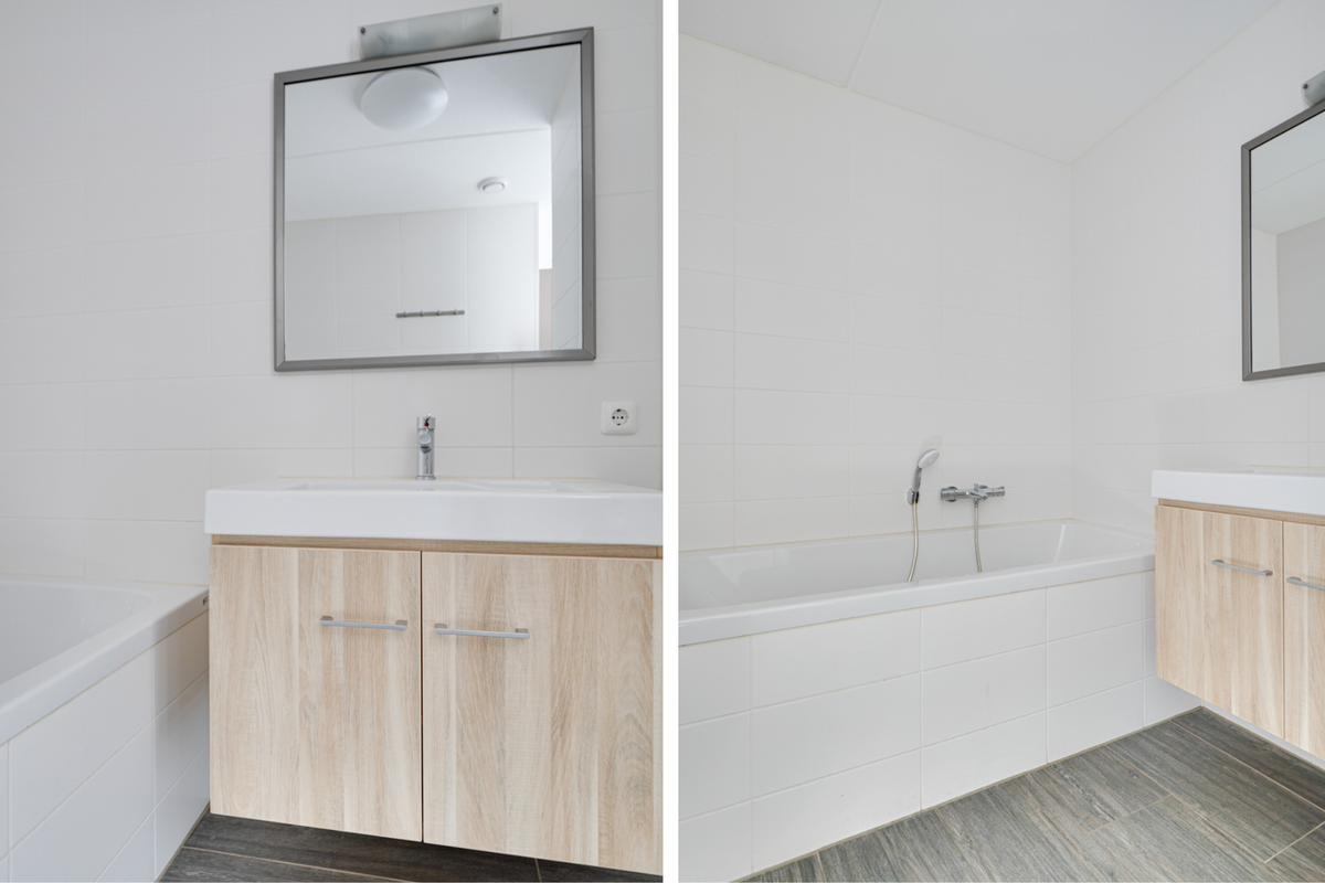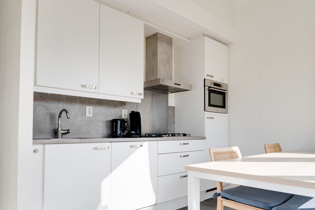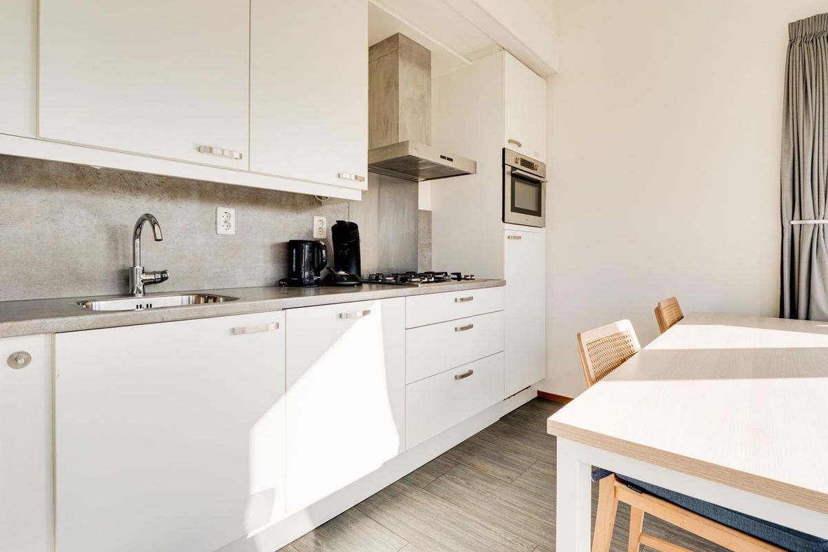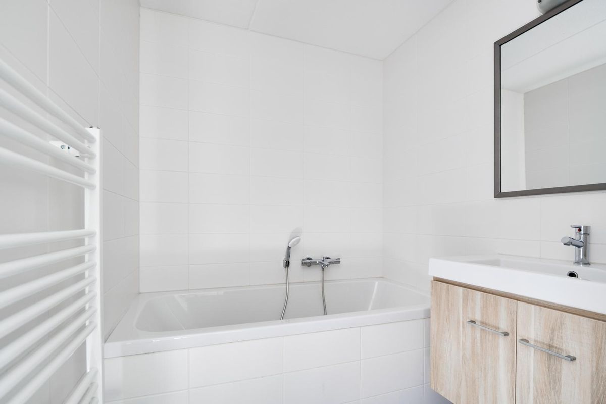De indeling van de woning is functioneel. De open keuken is strak en modern uitgevoerd in wit en beschikt over de benodigde inbouwapparatuur. De woning omvat twee slaapkamers, twee badkamers en een separaat toilet. Bovendien is er een afgesloten berging/wasruimte aanwezig, geschikt voor opslag en het plaatsen van witgoed.