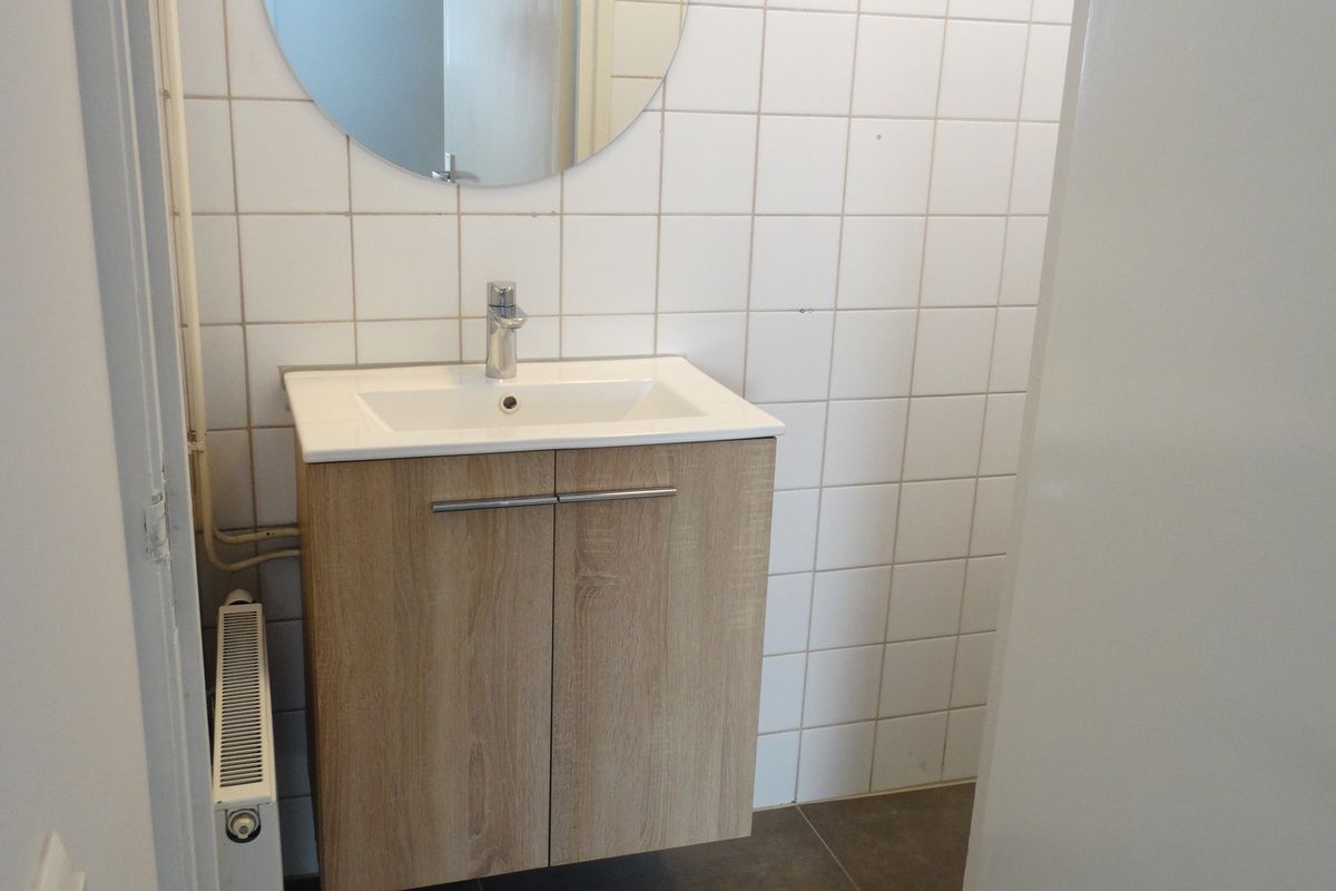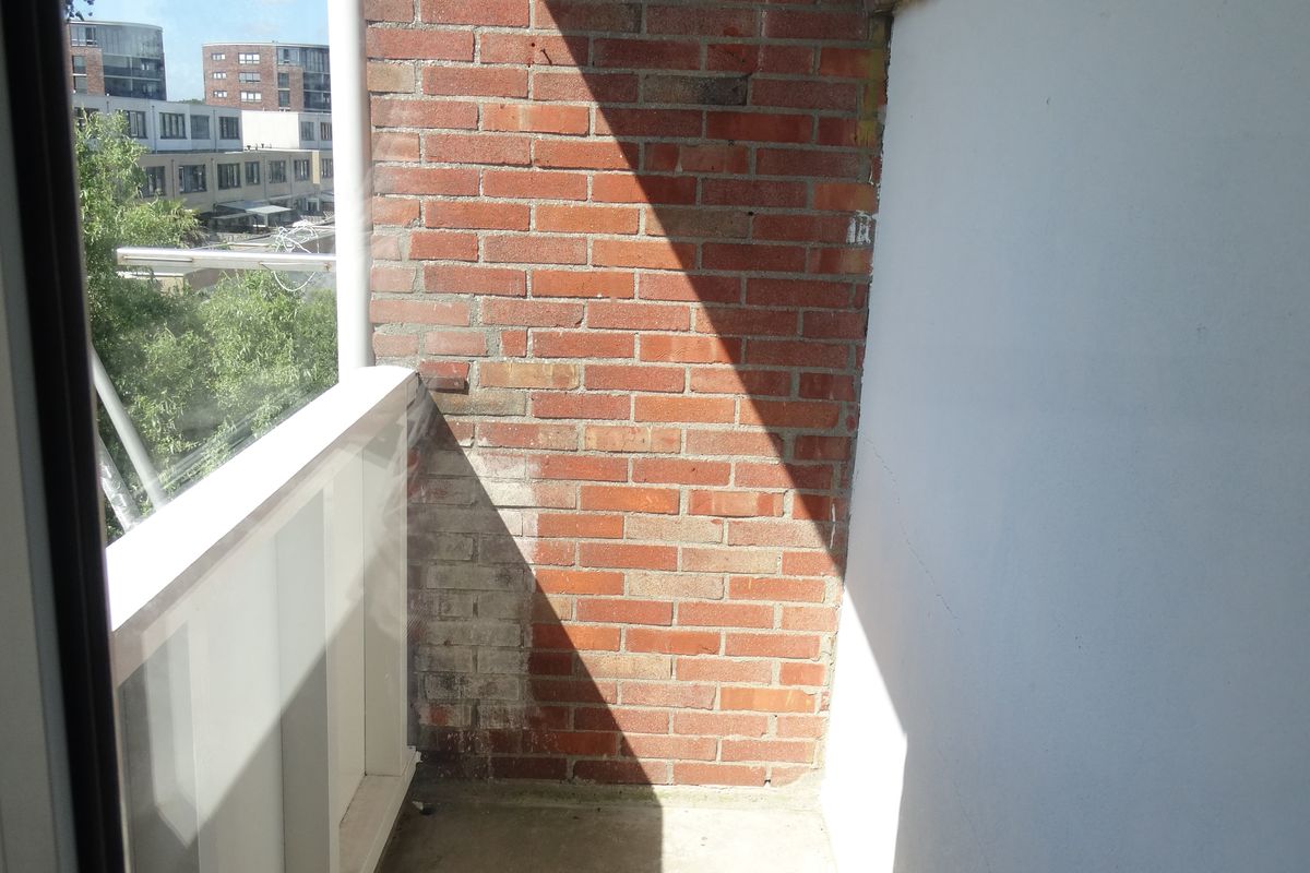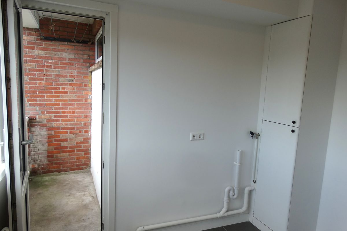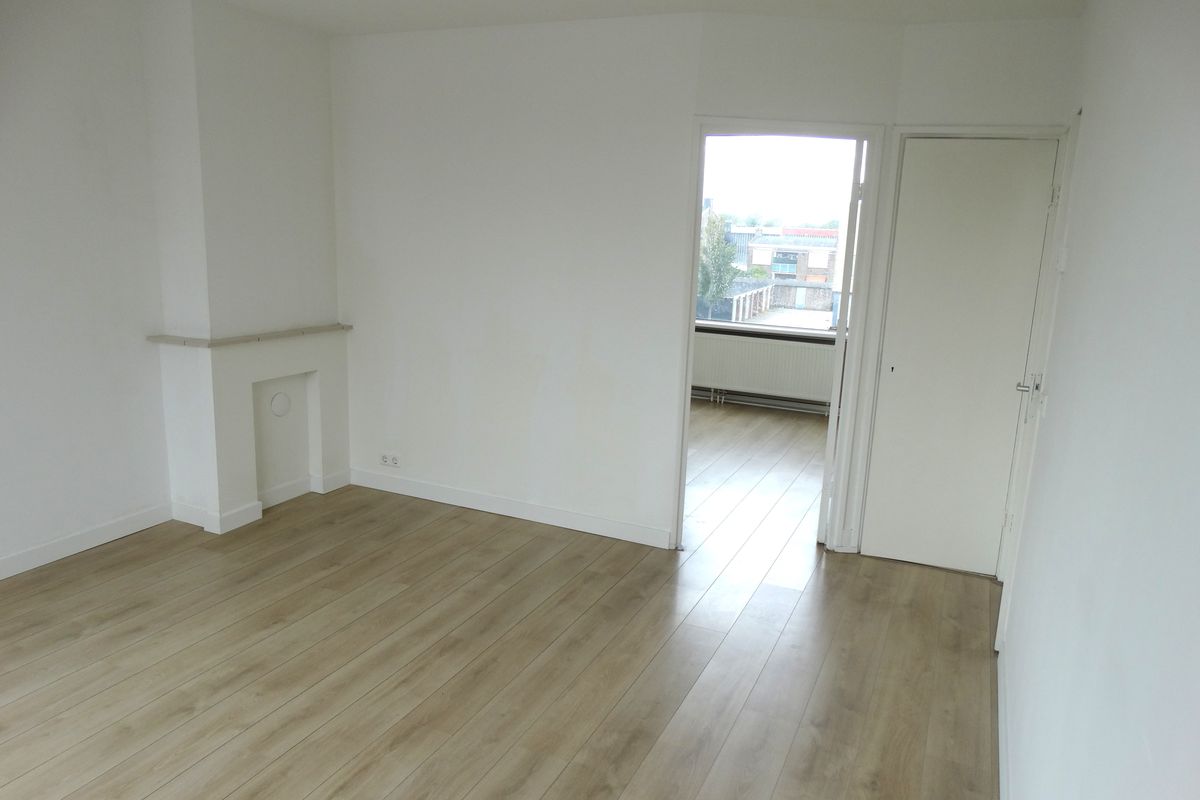 Appartement: hal met toiletruimte, ruime moderne keuken (ca. 6 m²) voorzien van onder- en bovenkasten, lades, gaskookplaat en afzuigkap. Tevens bevindt zich hier de wasmachine-aansluiting en opstelling c.v.-combiketel. Ook is er ruimte om een vaatwasser te plaatsen. Vanuit de keuken is er toegang tot een klein, maar zonnig balkon. De lichte woonkamer (ca. 17 m²) met veel lichtinval is voorzien van een vaste kast en een schouw. Verder zijn er 2 slaapkamers aanwezig (ca. 11 m² en 12 m²). De badkamer is eenvoudig, maar netjes van uitvoering voorzien van een wastafel met meubel.