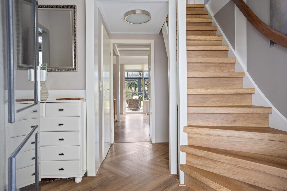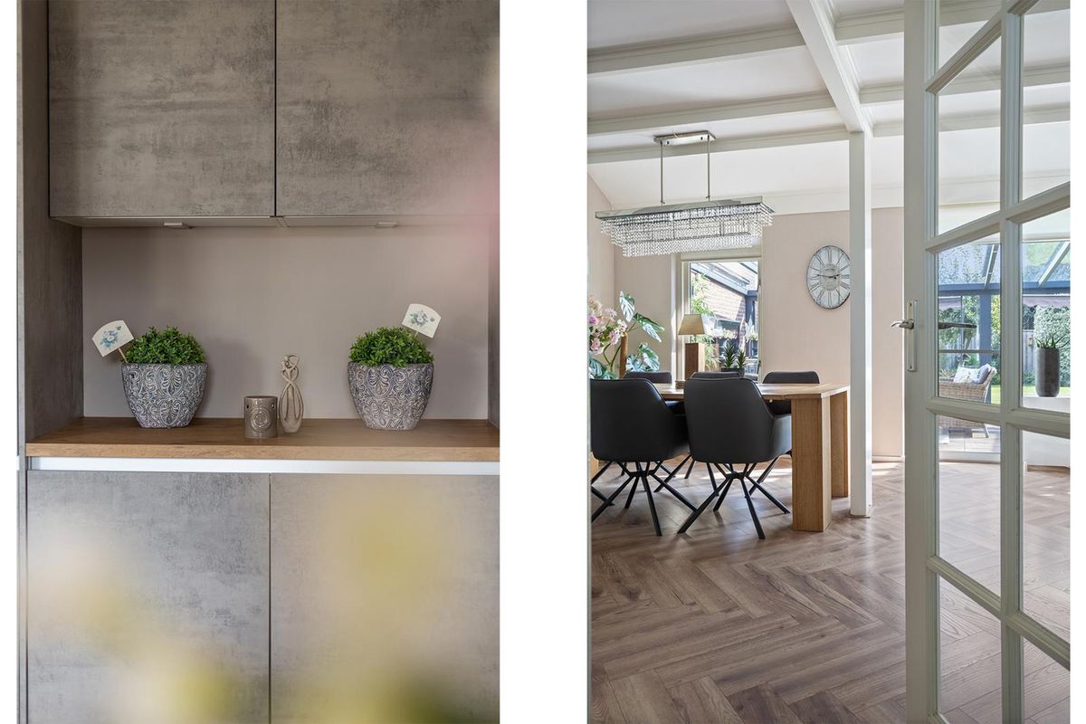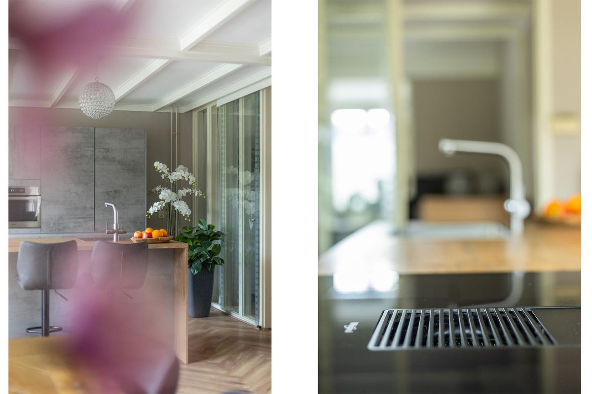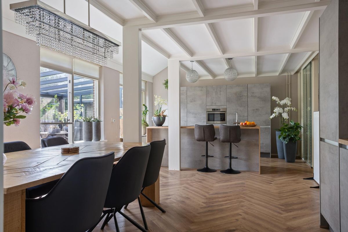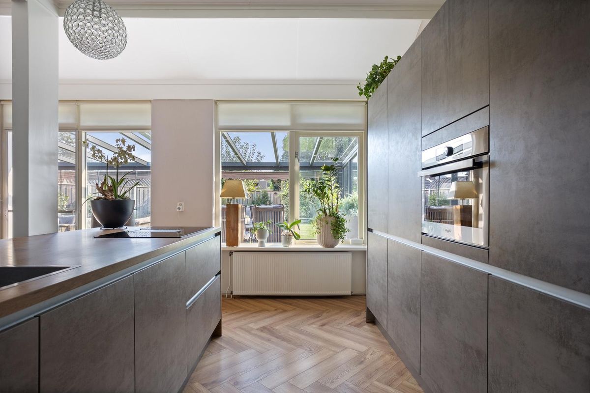 Vanuit de hal stap je de royale leefkeuken in met een doorloop naar de serre en de tuin. Hier is volop ruimte om te koken en te genieten met elkaar.