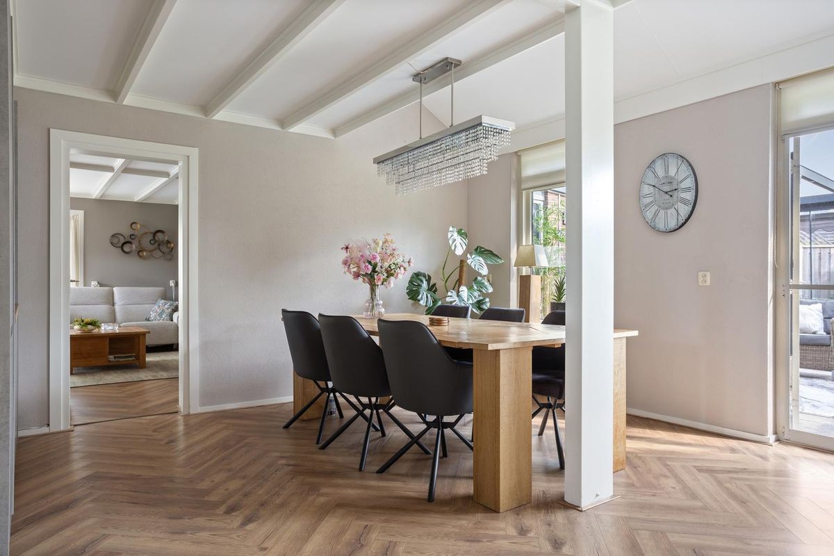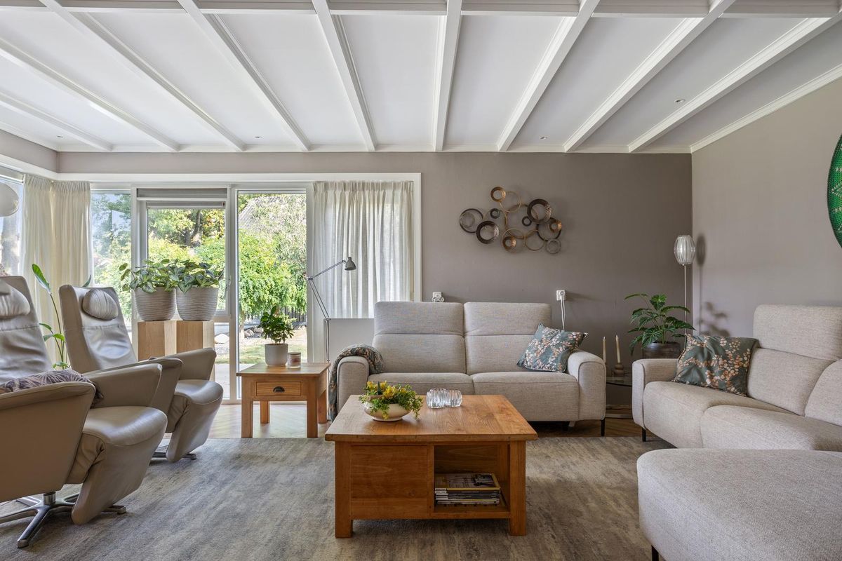 Naast de leefkeuken bereik je de woonkamer. Deze kamer is royaal en voorzien van raampartijen tot aan de grond waardoor je ver de straat in kunt kijken. Je ervaart dit als een lichte kamer met verbinding naar de rest van de woning.
