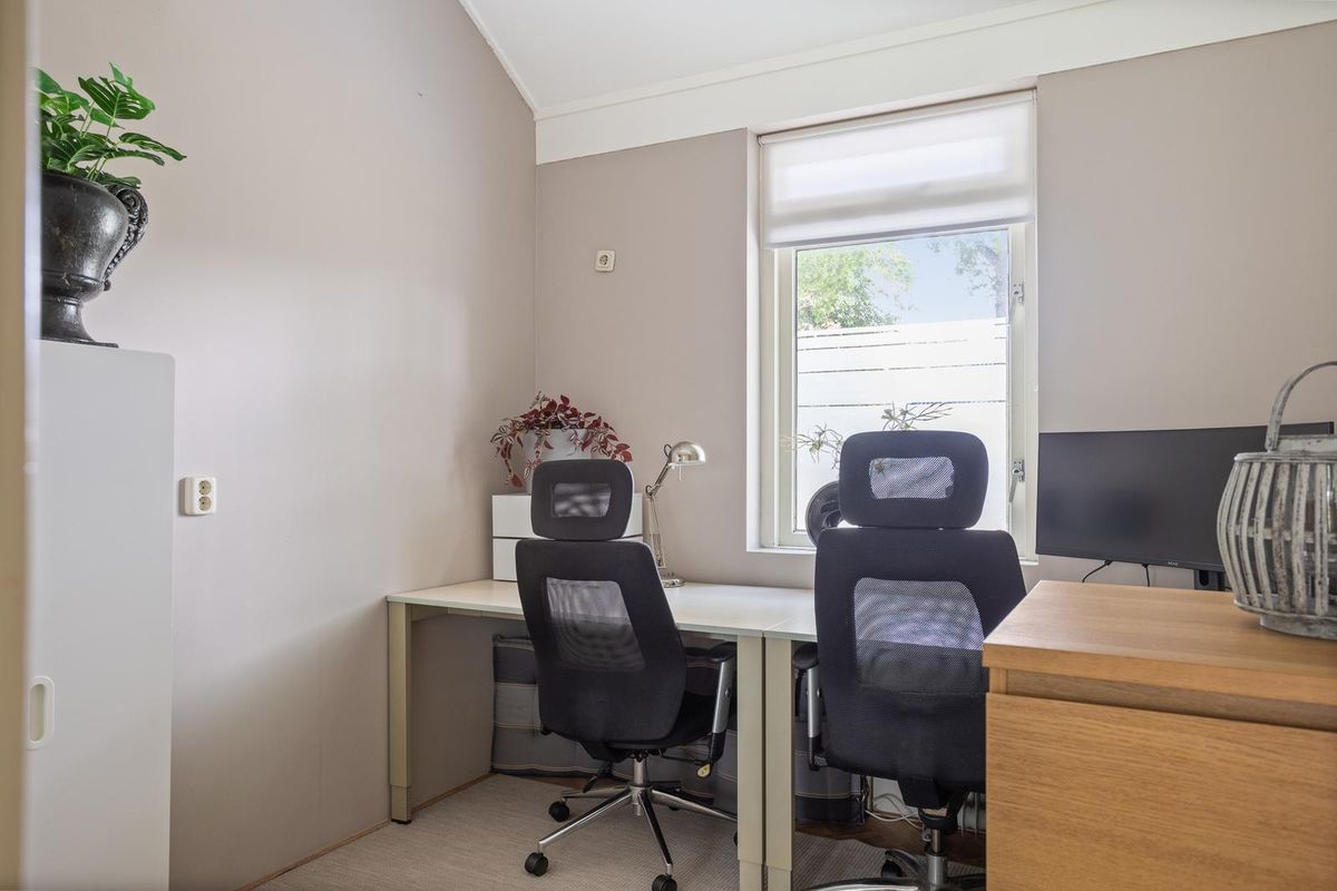 Aan de straatzijde is een extra kamer met zicht de straat in. De ruimte is als kantoorruimte ingericht. Door de afsluitbare schuifdeur kun je hier ongestoord werken.